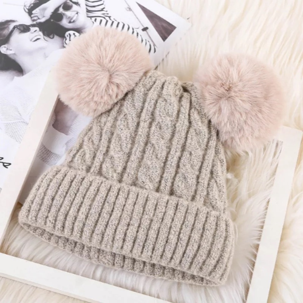 ファーポンポンニット帽(一ヶ月程でお届け)