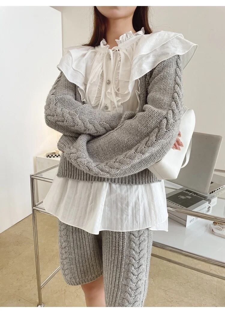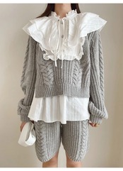 タイツやブーツ合わせでカジュアルなスタイルにもオススメなショートパンツは、同シリーズのニットとセットアップにもオススメです。