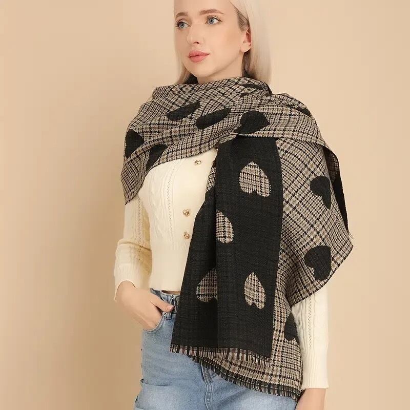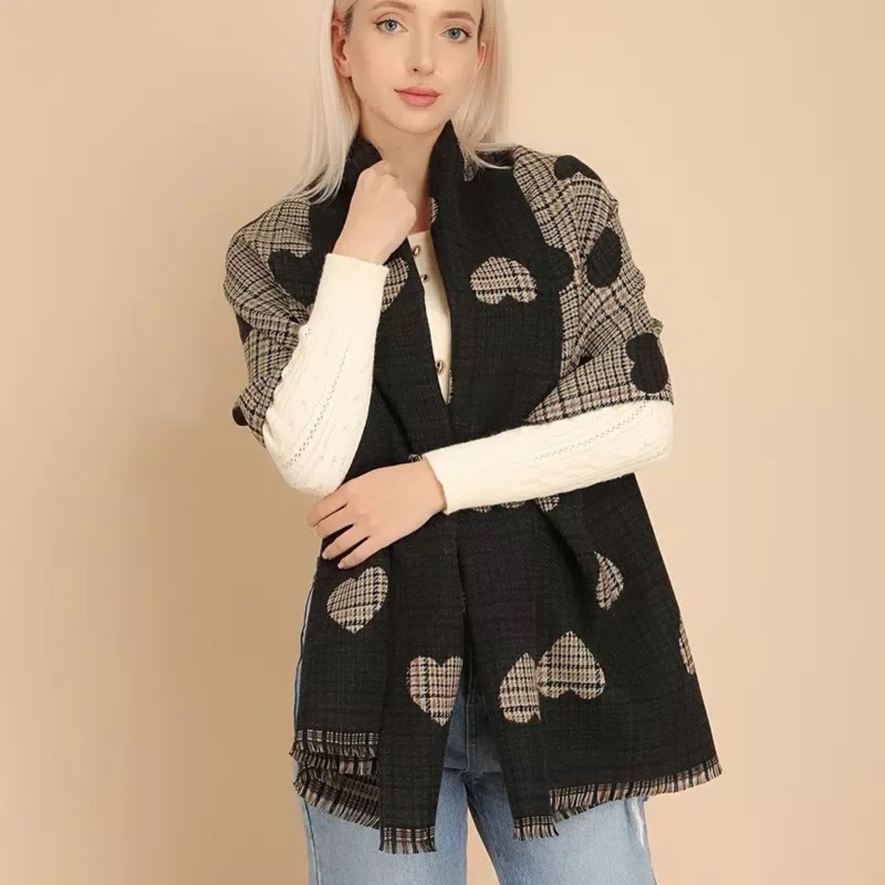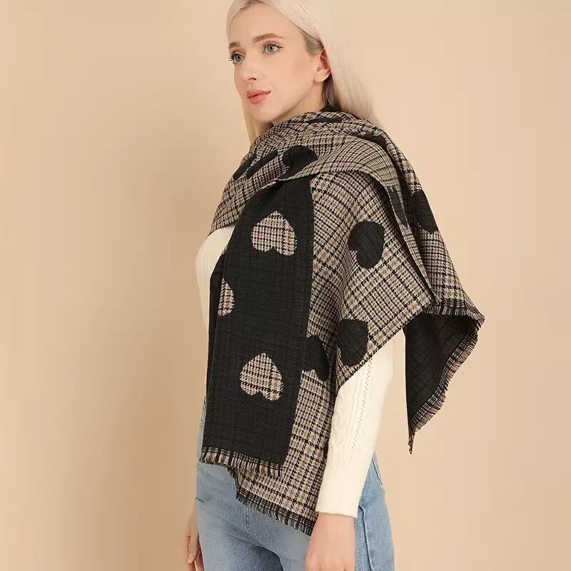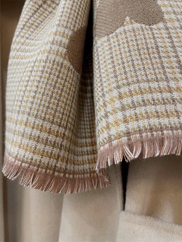 両面の柄をお楽しみ頂けるストールは、コーデのアクセントとしてもオススメです。
