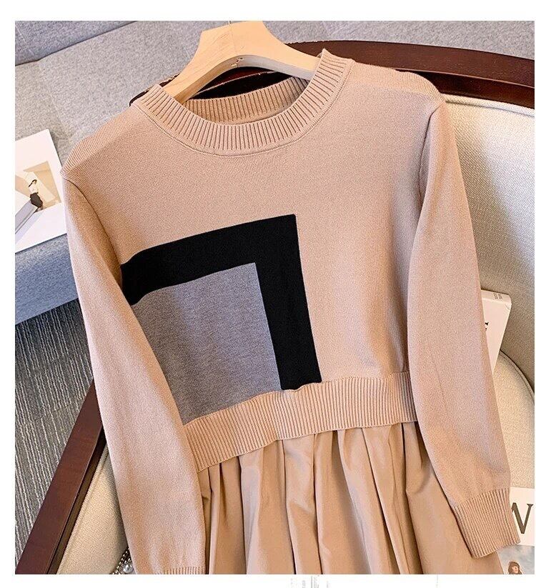 ドッキングデザインにスクエアの配色がアクセントのワンピースは、1枚でオシャレなスタイリングに。
