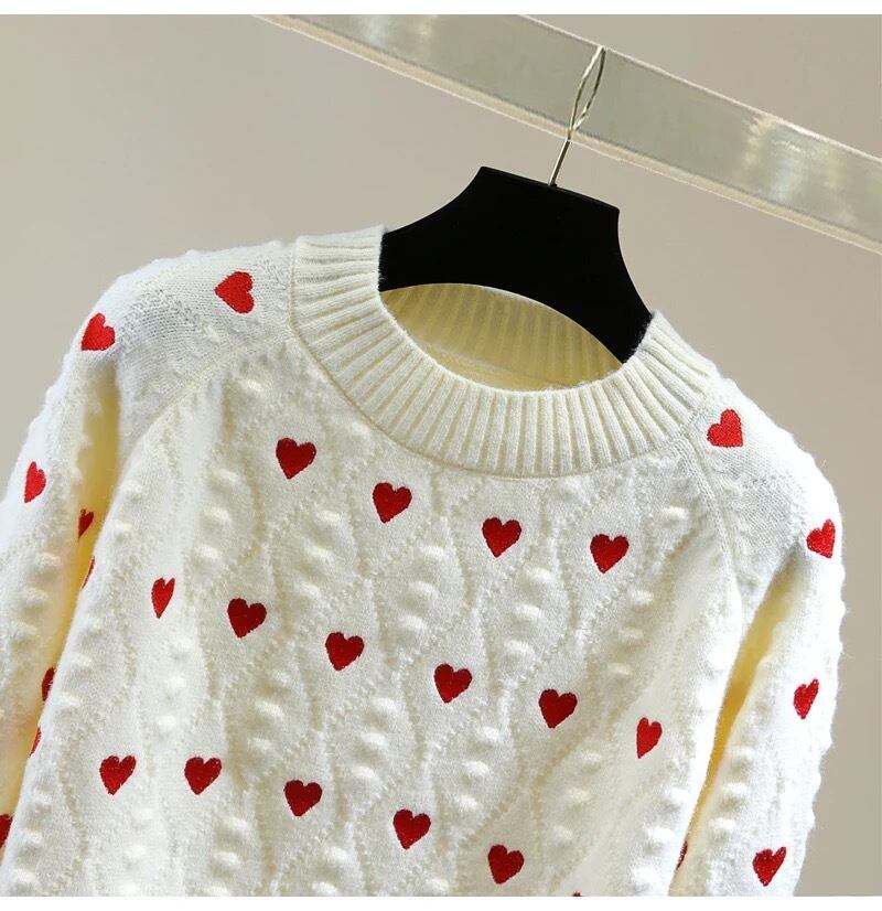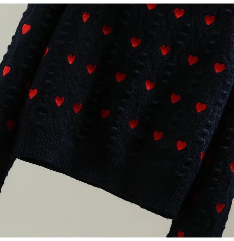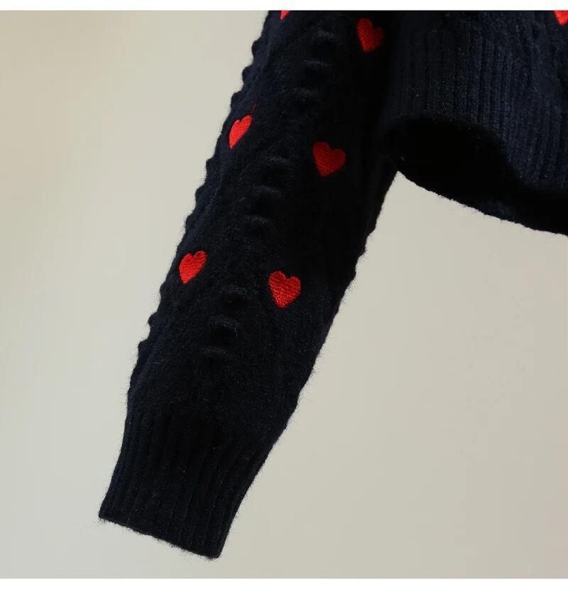 ハートの刺繍とドットニットが可愛いニット。