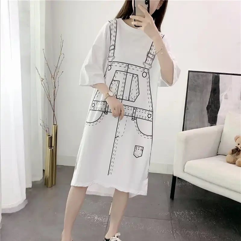 だまし絵プリントTシャツワンピース(一ヶ月程でお届け)