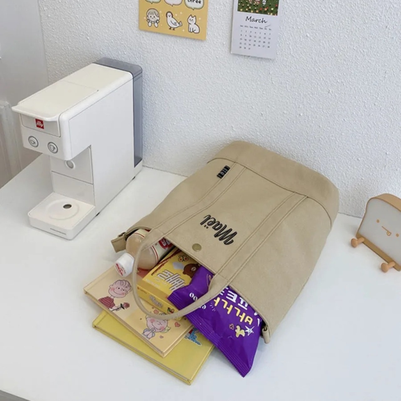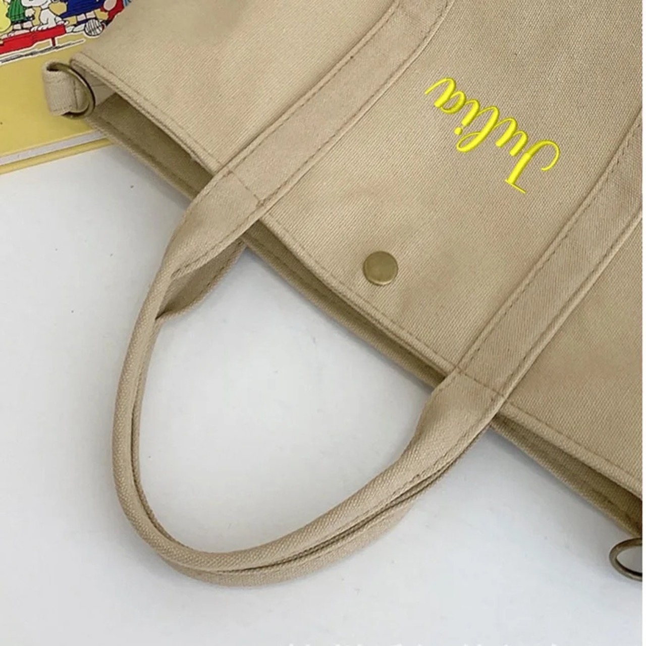 ネームカスタマイズ頂けるキャンパスバッグ。