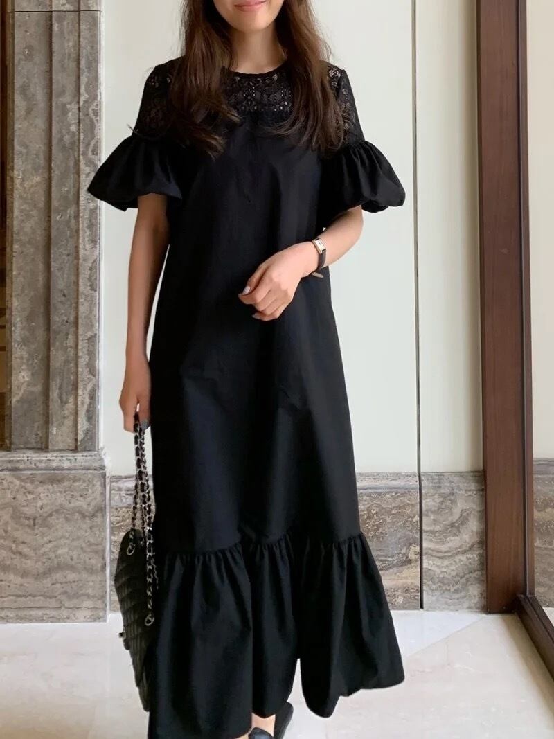 レースバルーンスリーブワンピース(一ヶ月程でお届け)