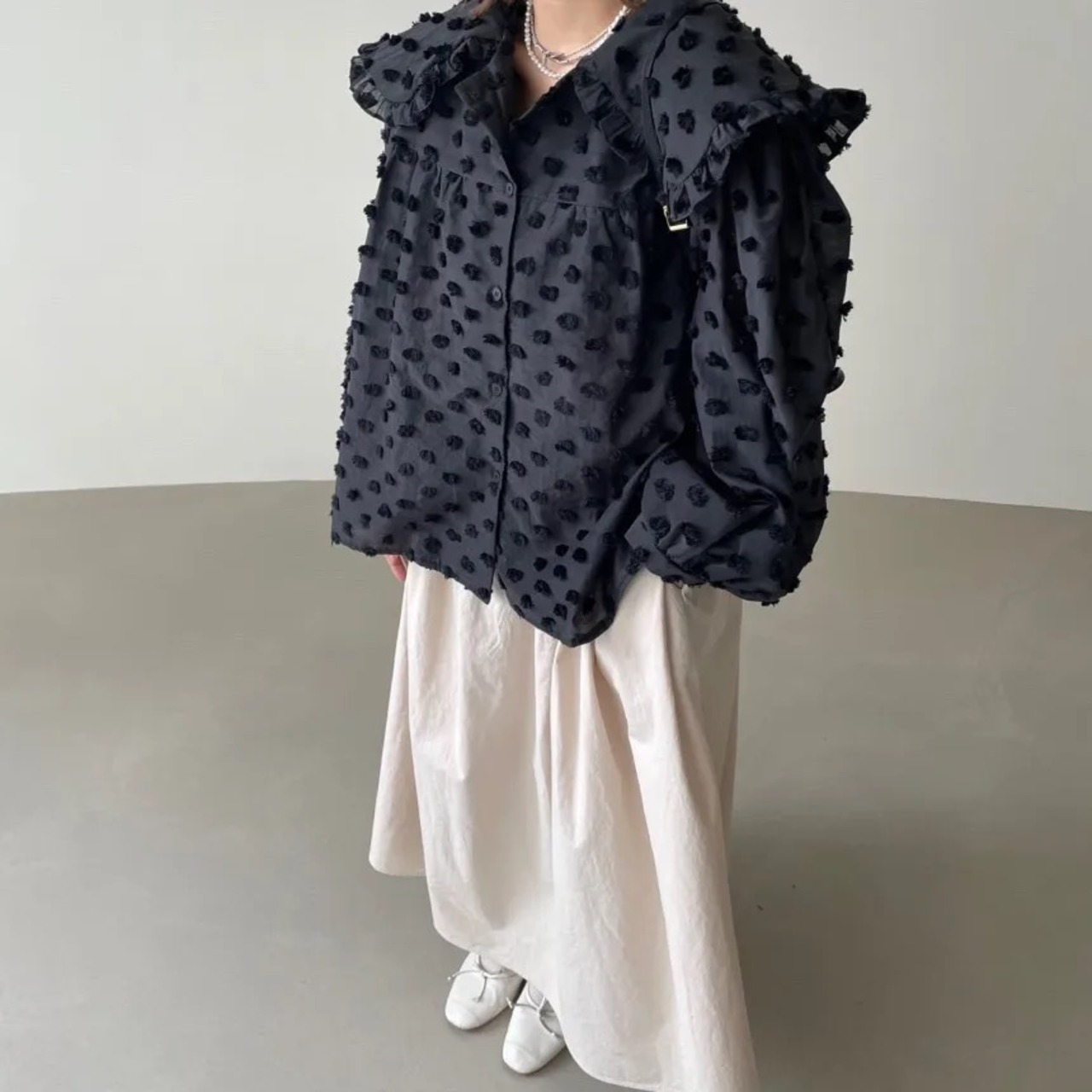 ドットビッグカラーブラウス(一ヶ月程でお届け)