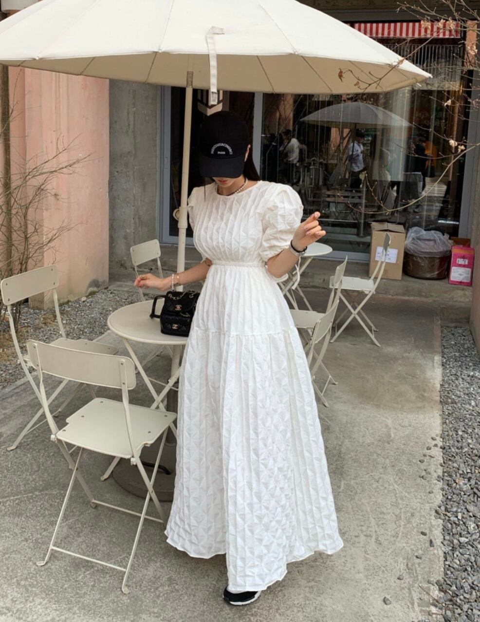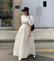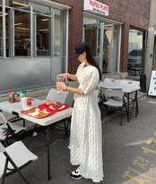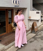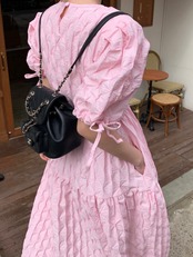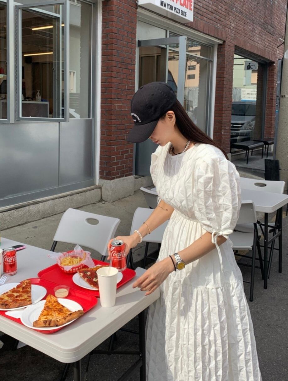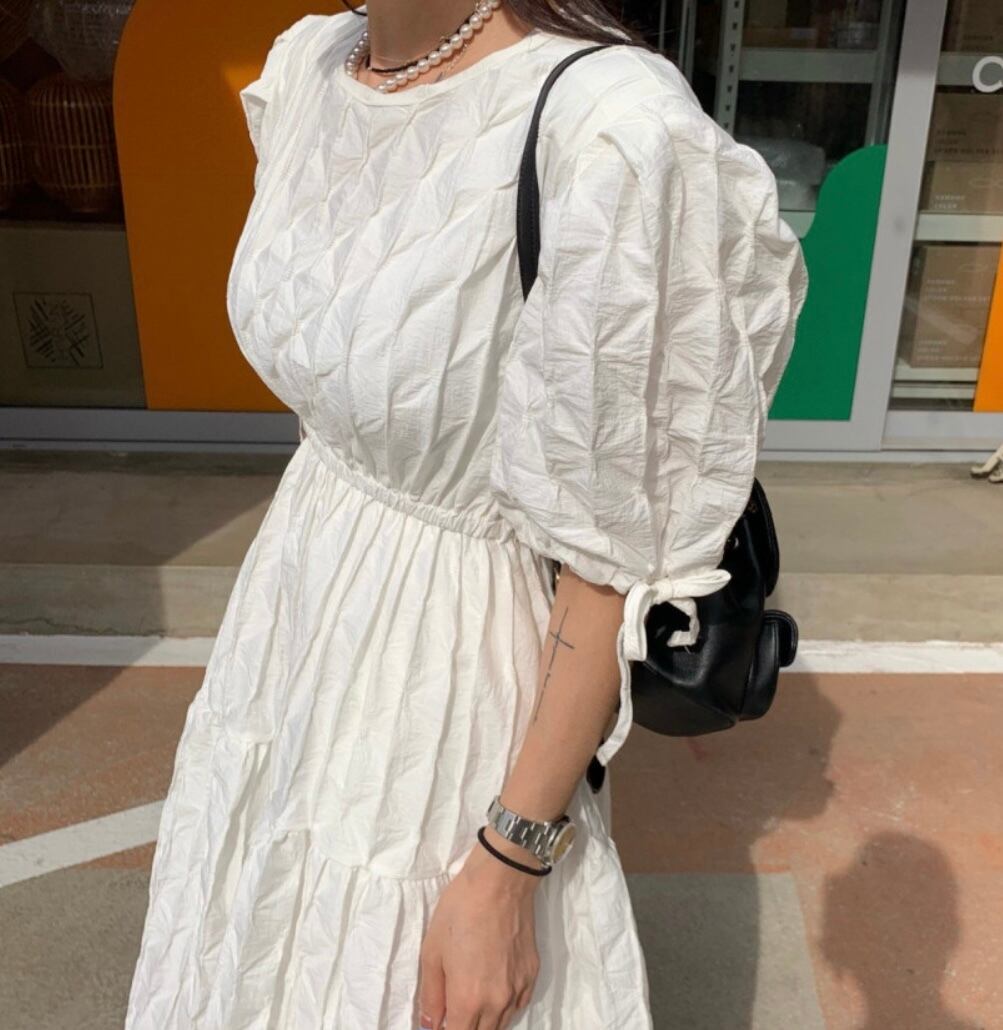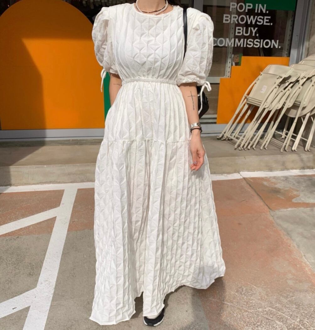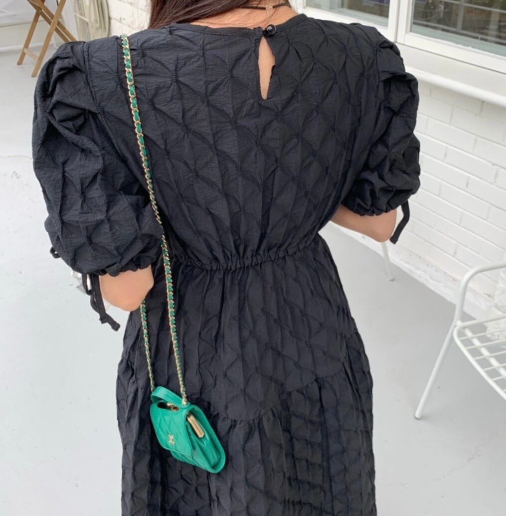 立体感あるお素材でデザインされたワンピース。