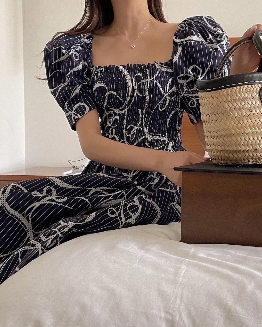 タックパフスリーブもアクセントになり、シャーリングデザインで楽に着用頂けます。