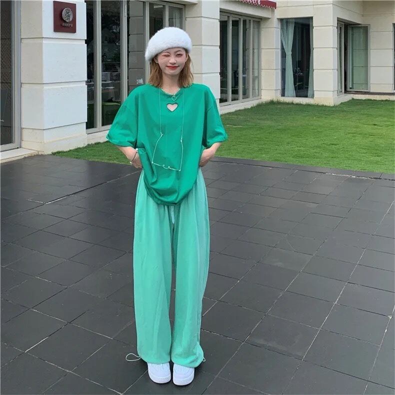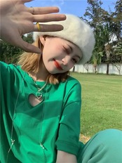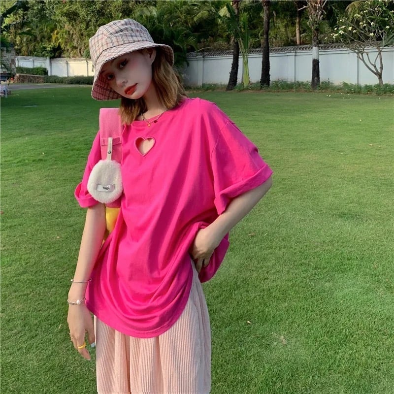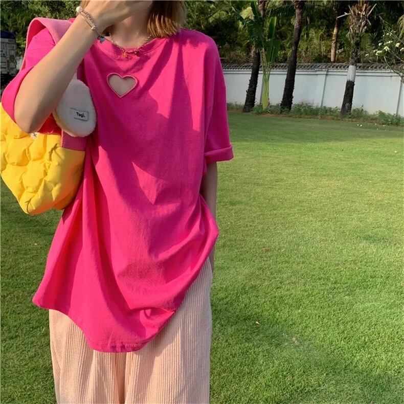 インナーにタンクやベアトップを重ねて着ても、ハートの柄になり遊び心あるTシャツに。