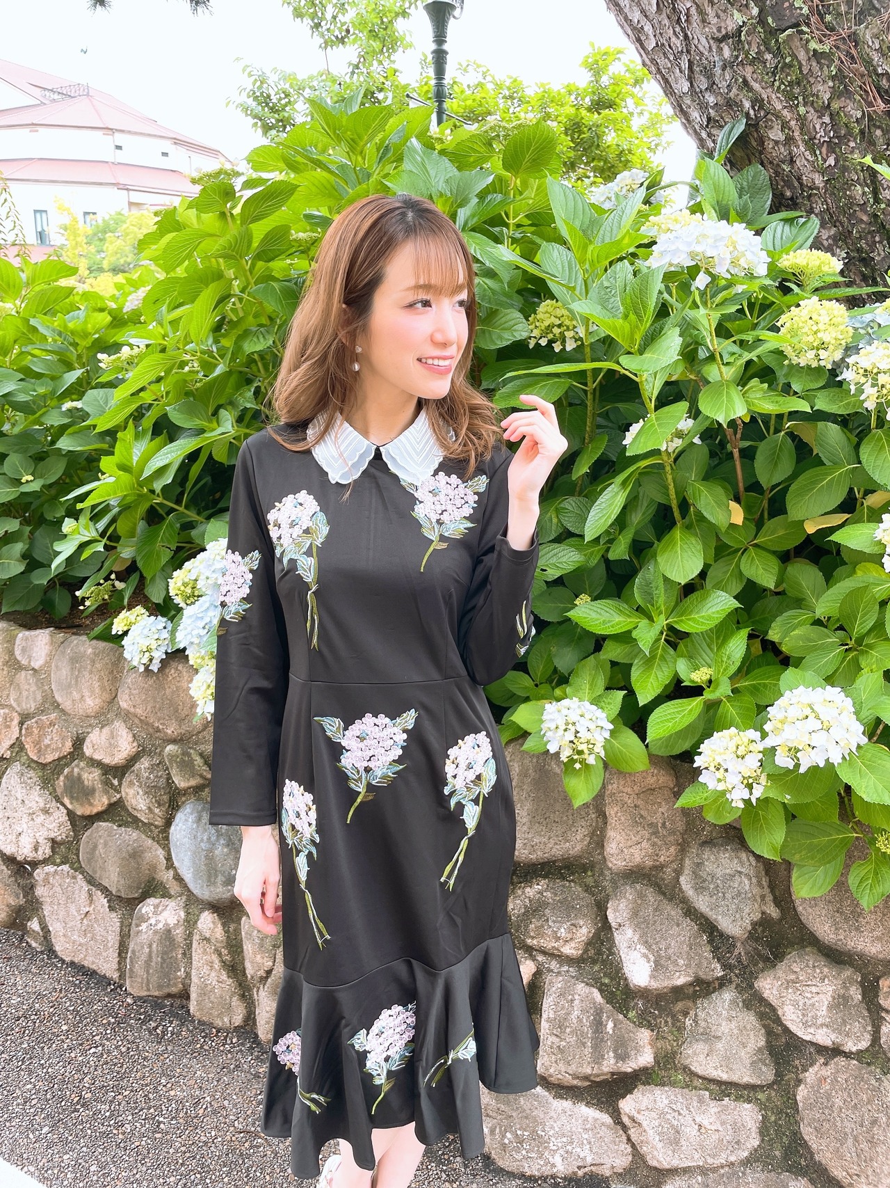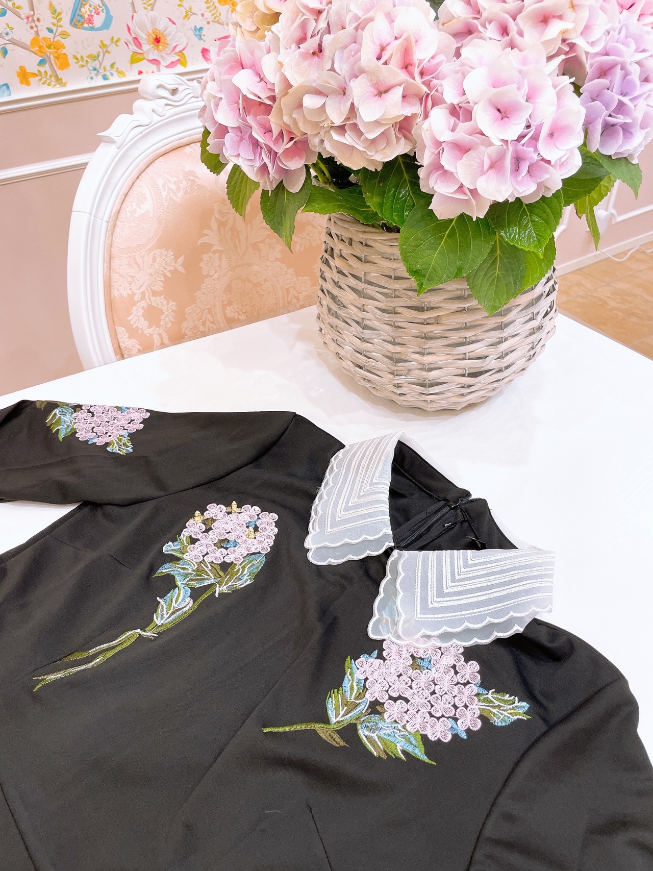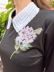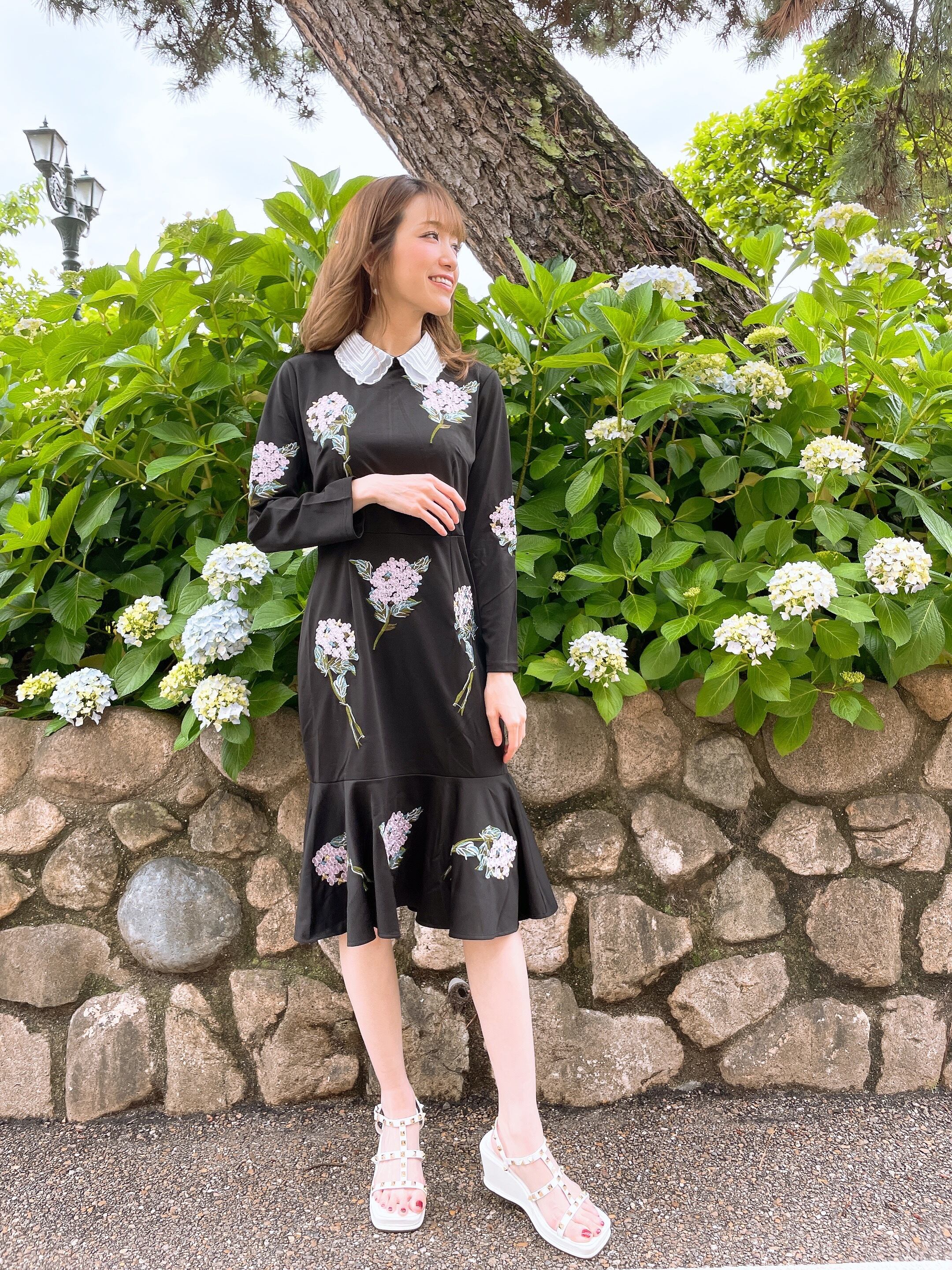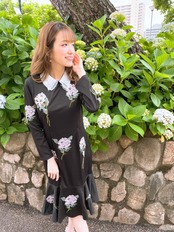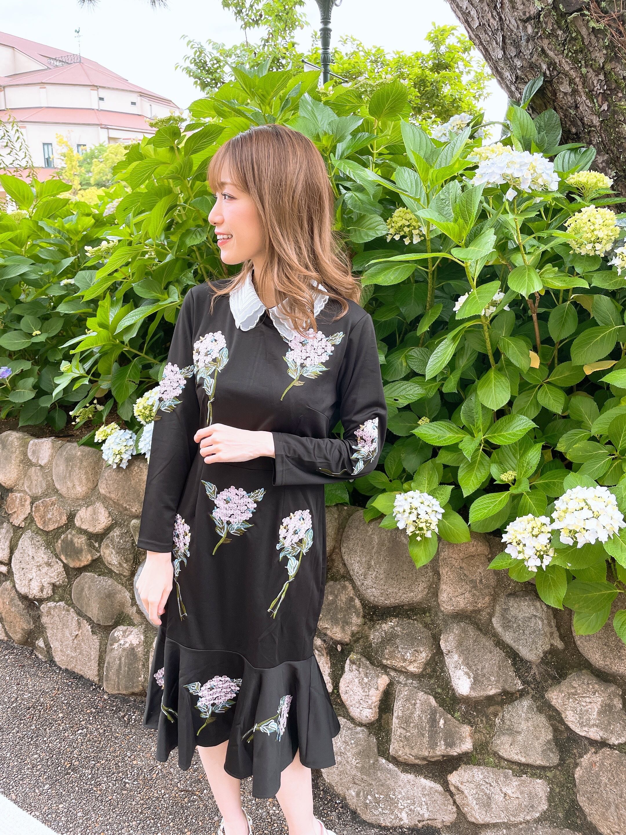 アジサイの刺繍が華やかなワンピース。