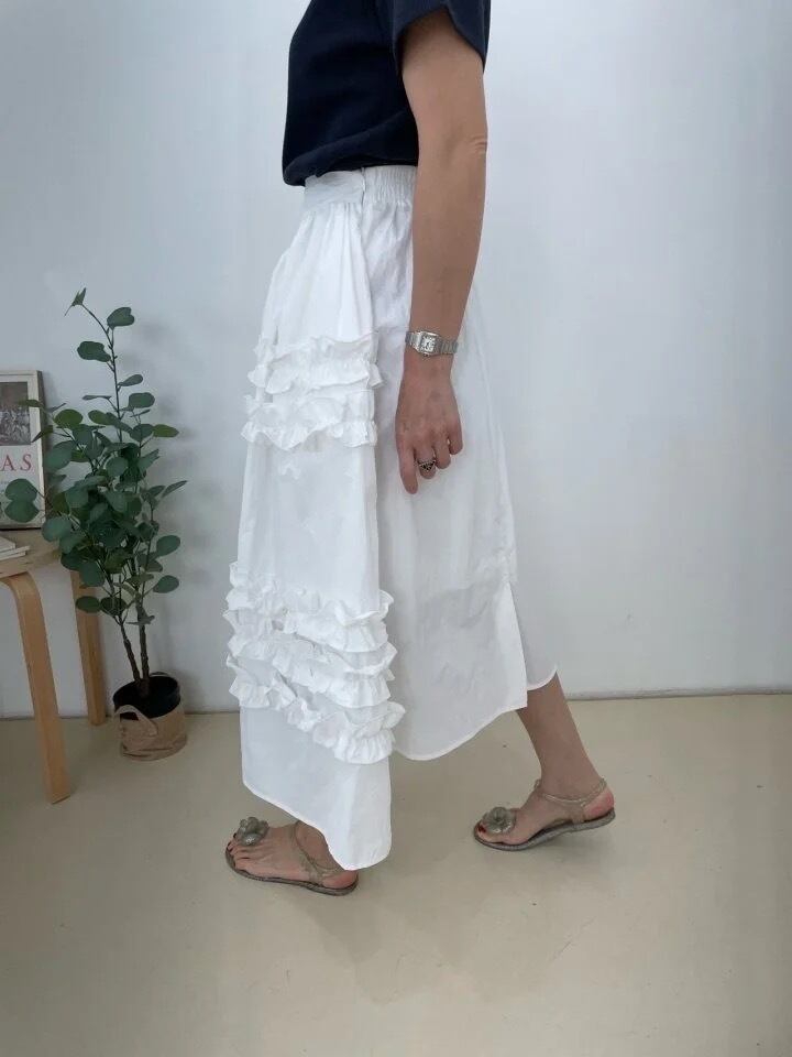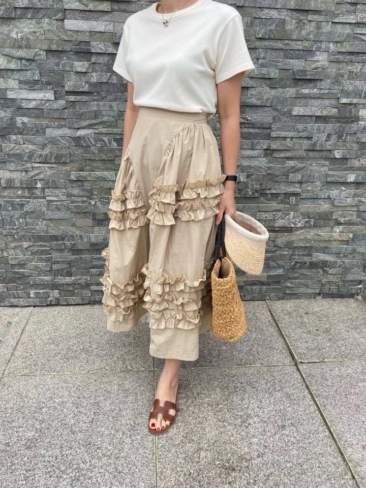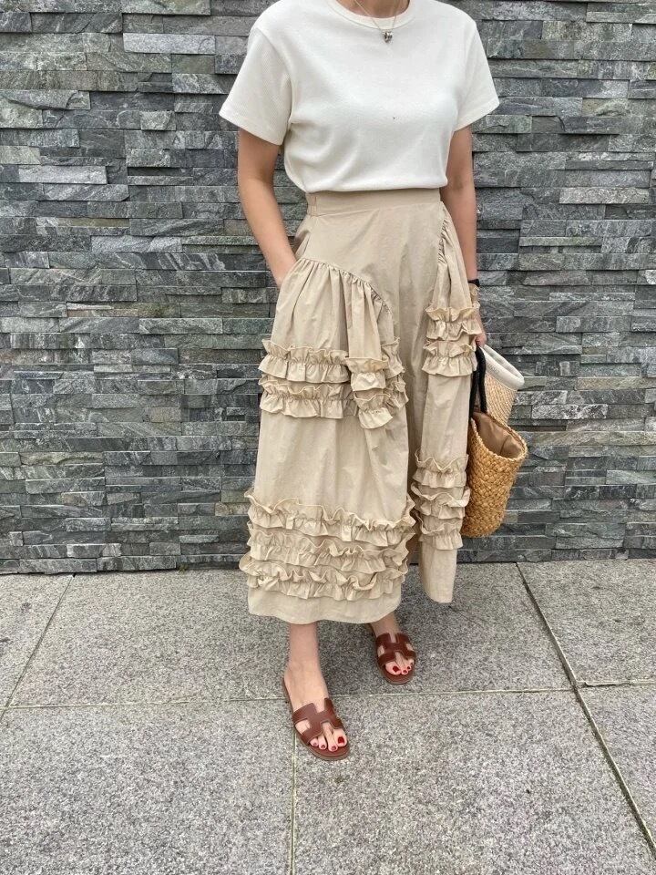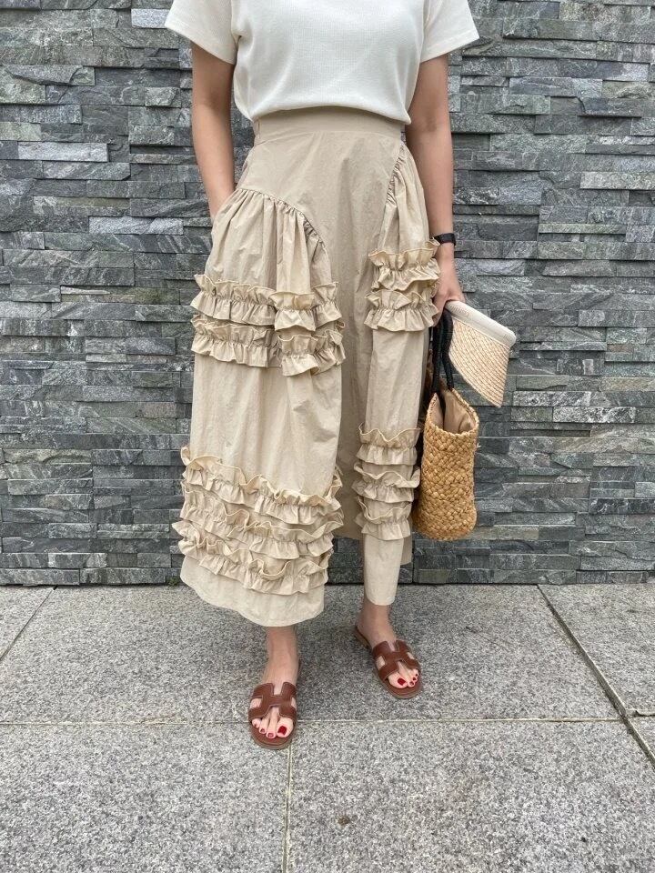 よりフリルが映えて、カジュアルなTシャツ合わせなどにもオススメなスカートです。