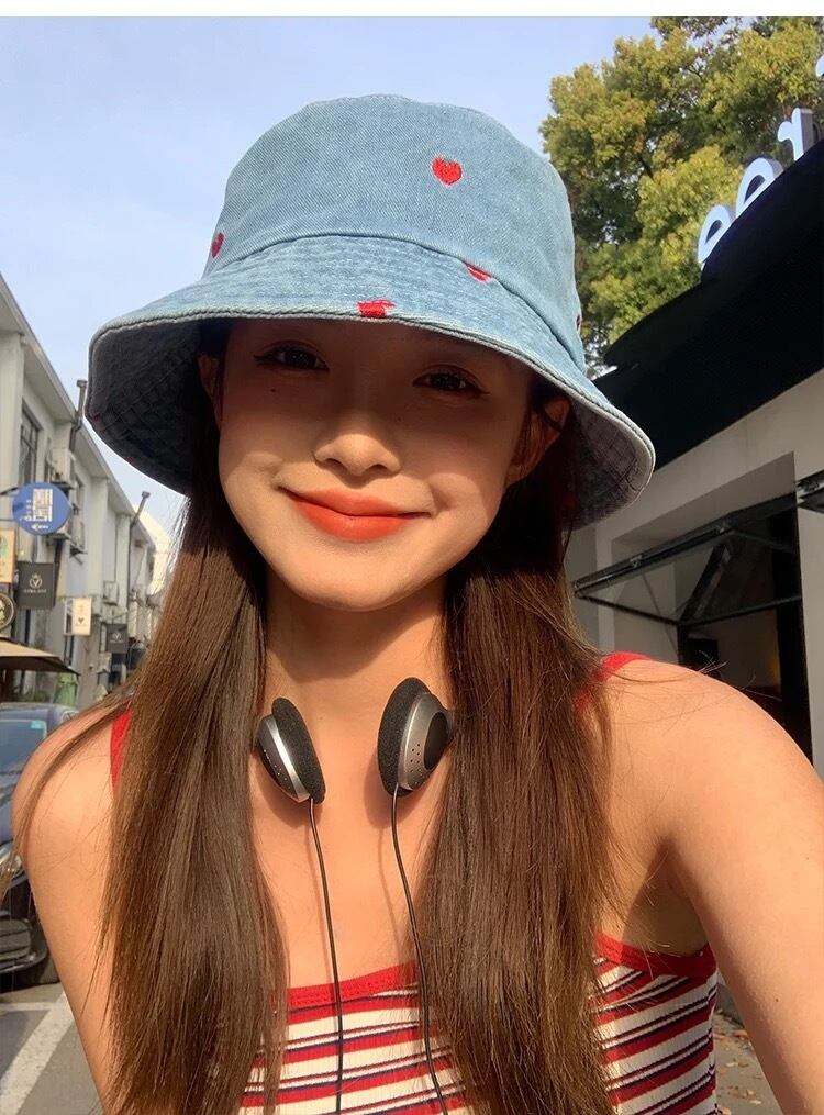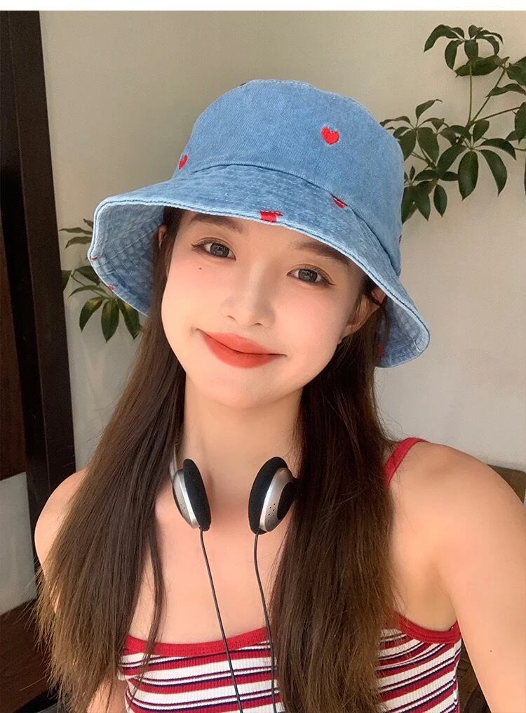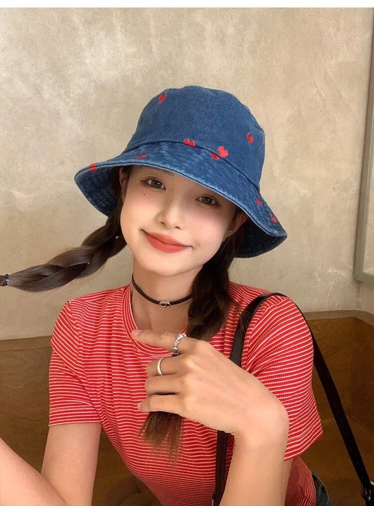 ドットハートデザインのダンガリーハット。