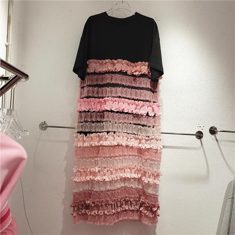 チュールフリルが華やかにデザインされたTシャツワンピース。