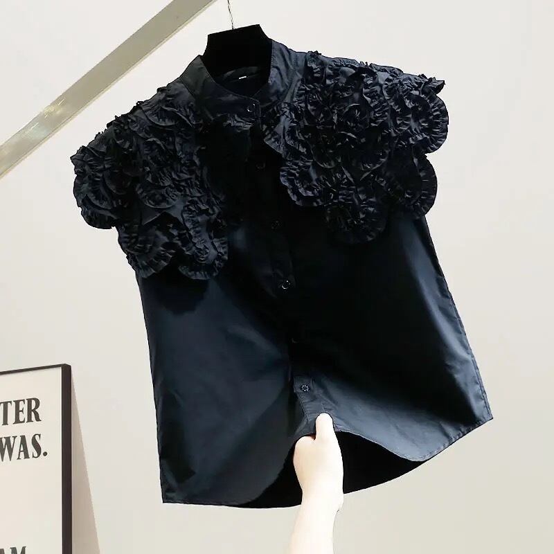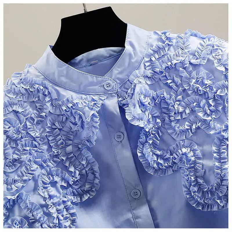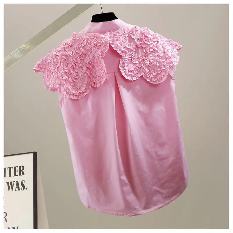 スカラップレースの襟元が華やかなブラウス。