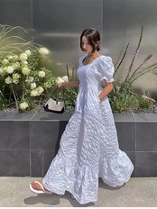 ジャガードパフスリーブワンピース(一ヶ月程でお届け)