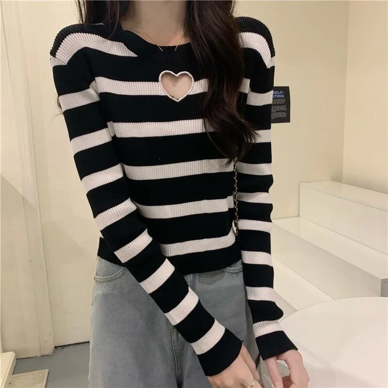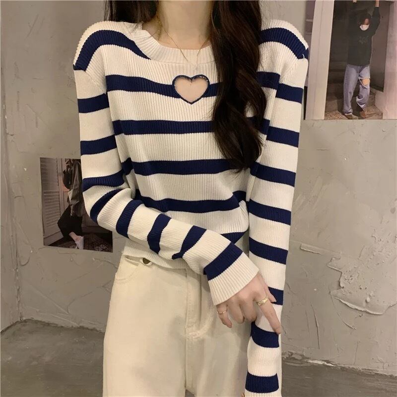 ハートカットボーダートップス(一ヶ月程でお届け)