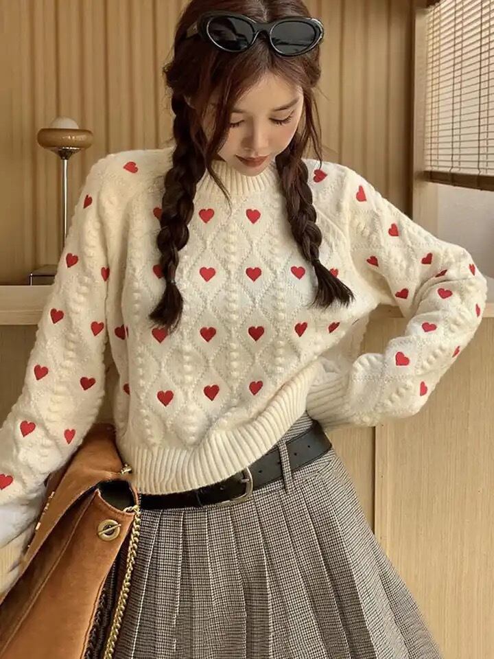 秋冬はチェックのボトムス合わせにもオススメなニットです。
