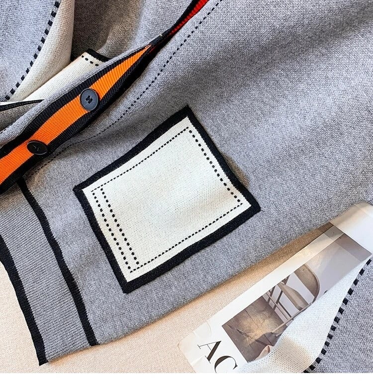 だまし絵ポケット配色カーディガン(一ヶ月程でお届け)