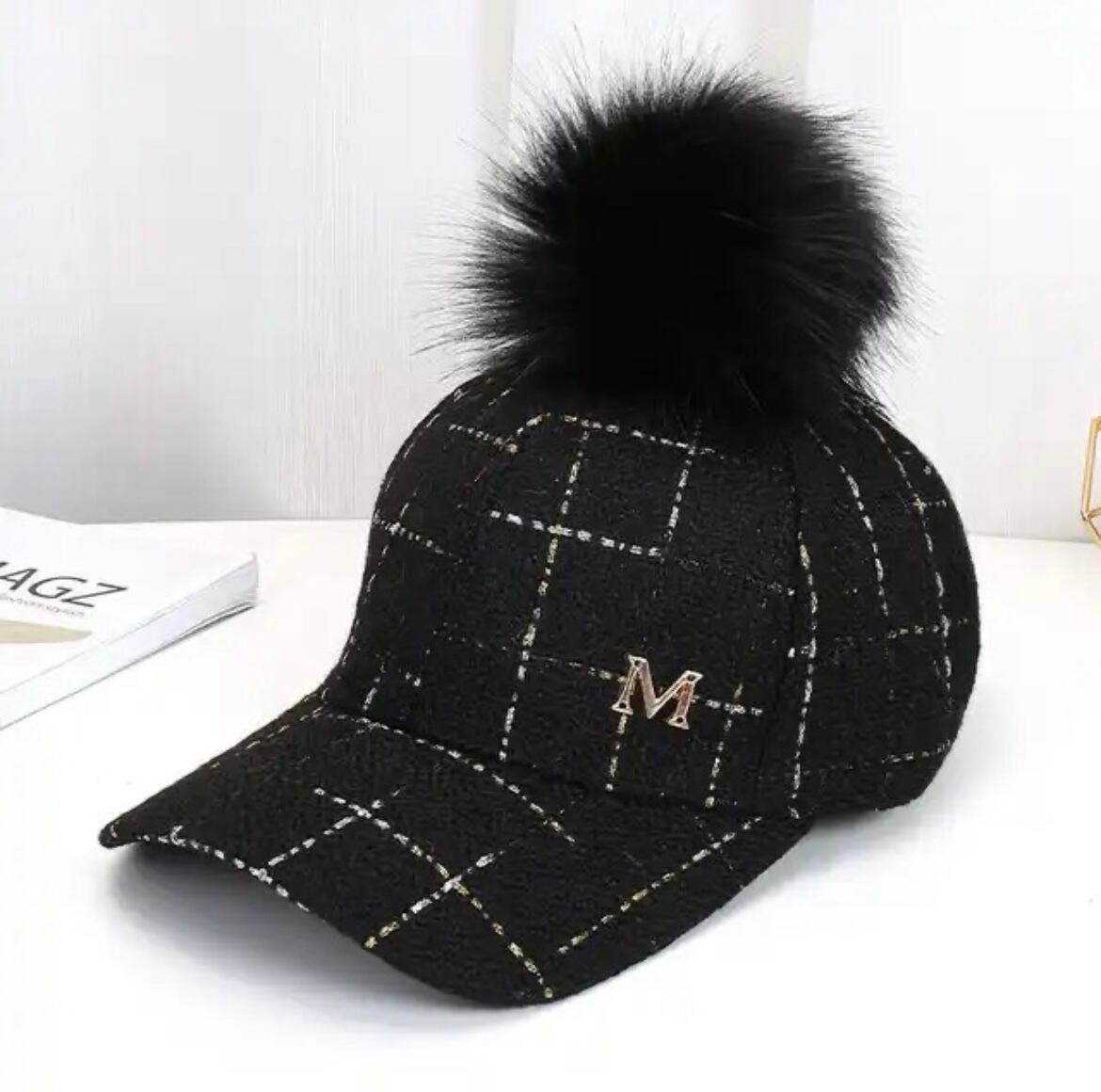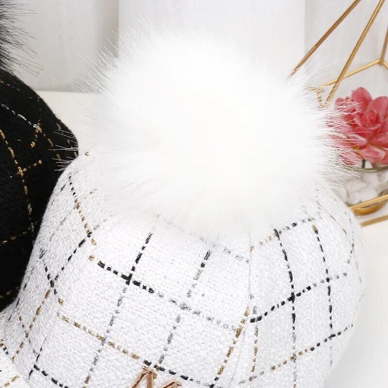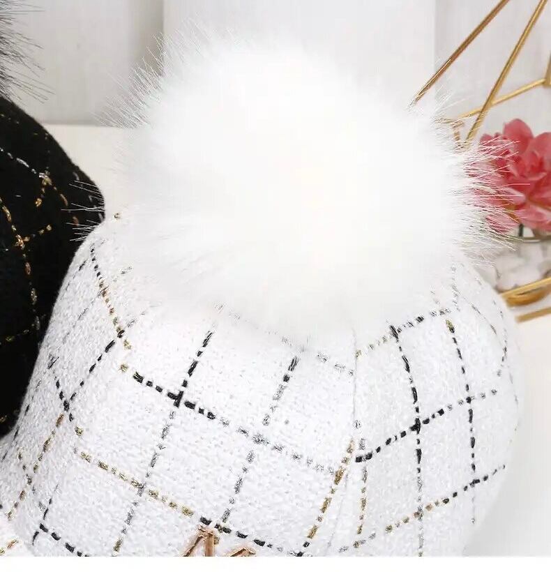 ファーポンポンツイードキャップ(一ヶ月程でお届け)