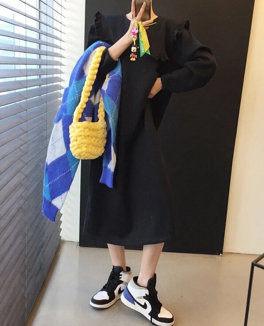 フリルビッグカラーがアクセントのスウェットワンピース。