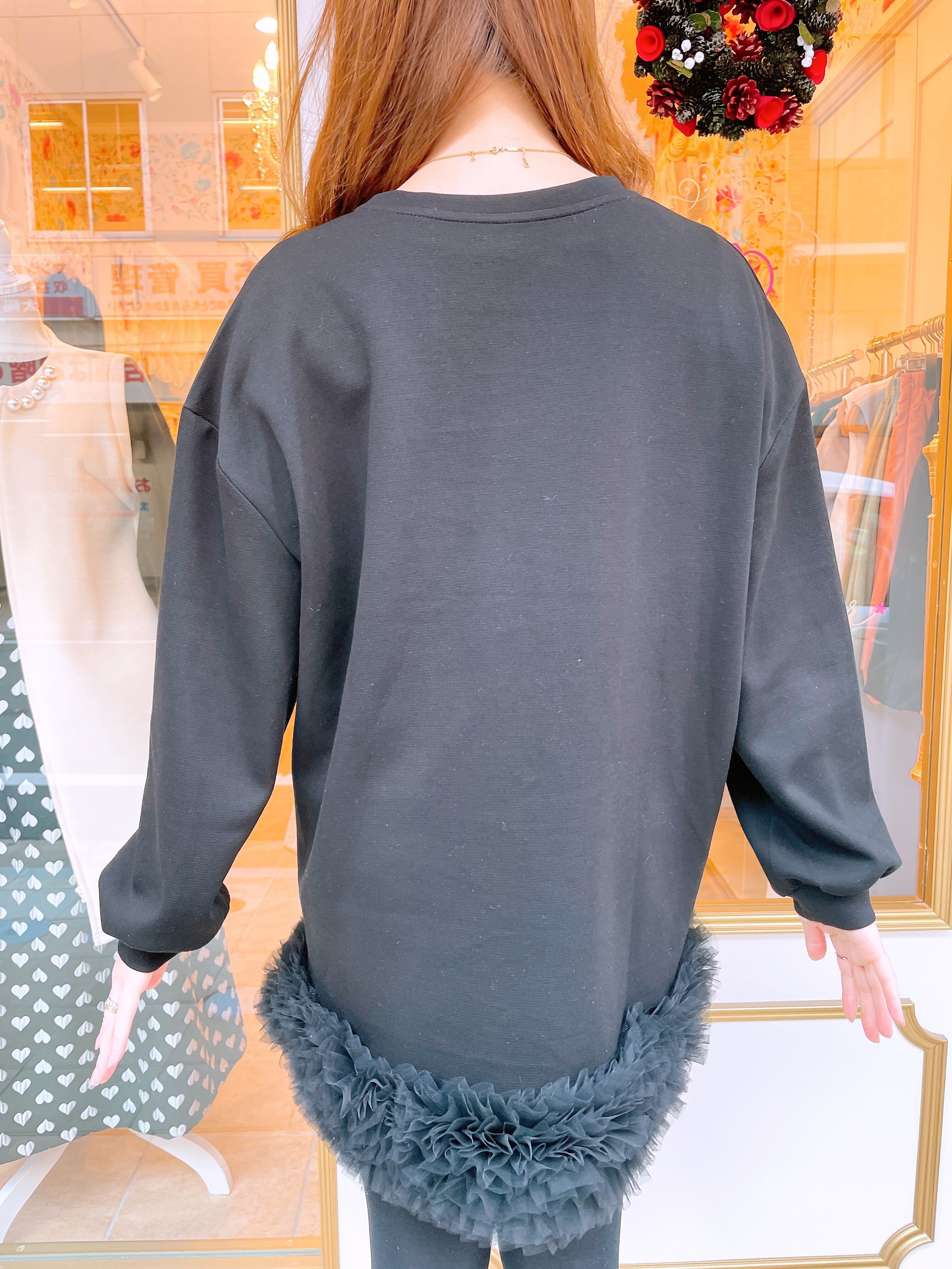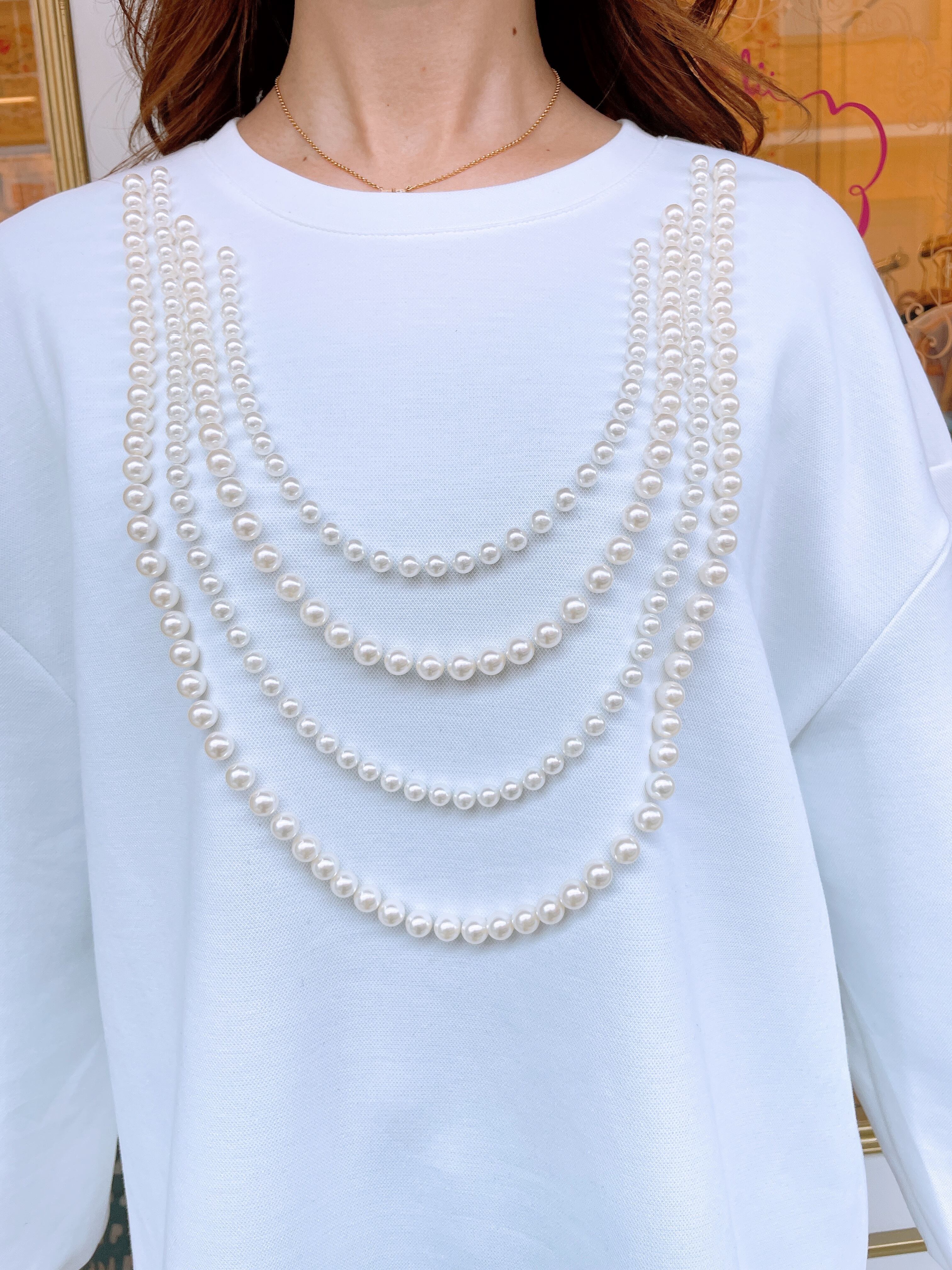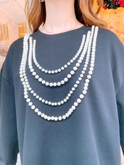 4連パールのネックレスをしているかのようなデザインに裾チュールフリルが華やかなトップス。