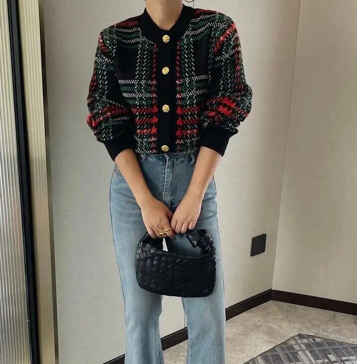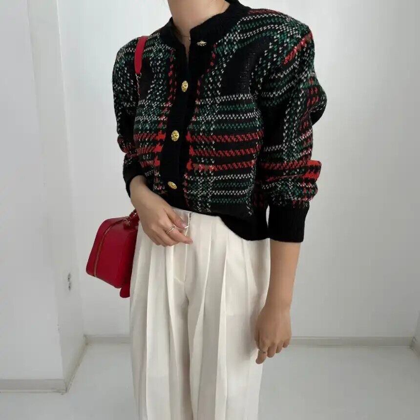 チェック柄ニットカーディガン(一ヶ月程でお届け)