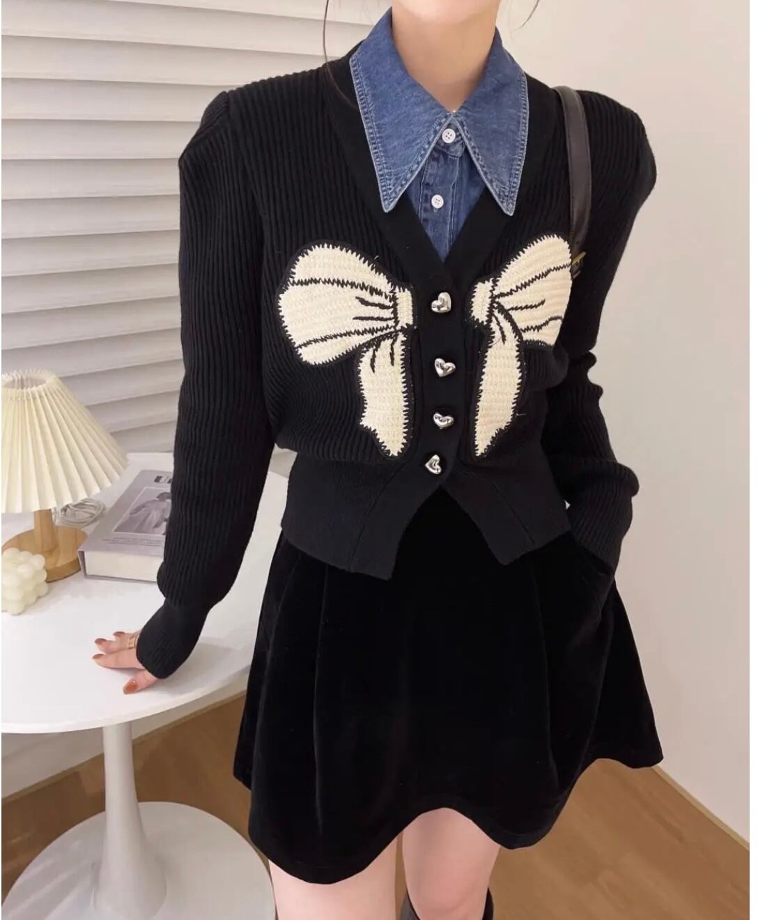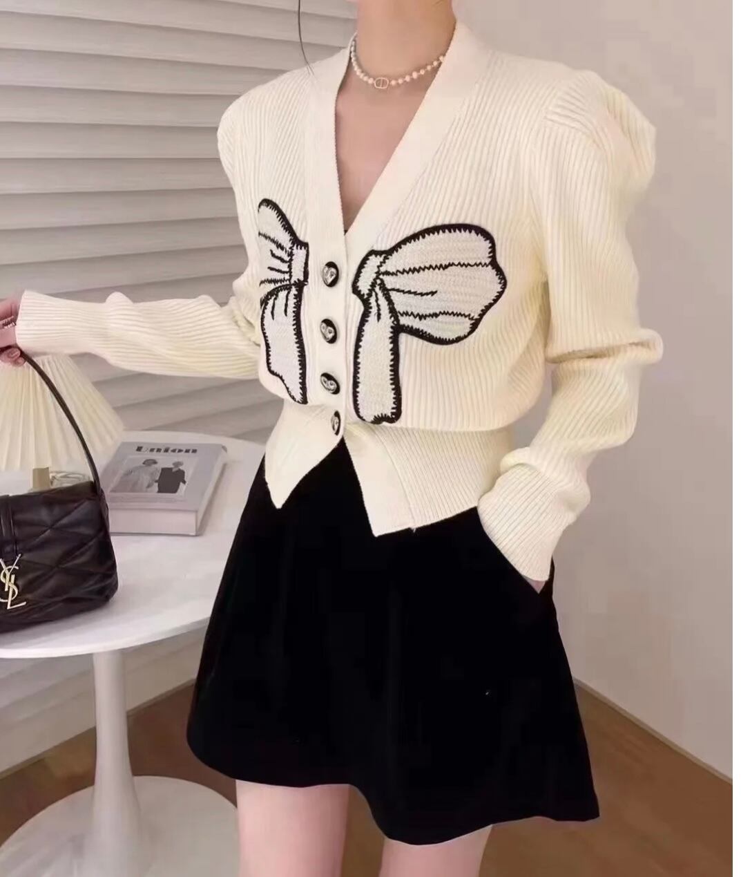 リボン刺繍ニットカーディガン(一ヶ月程でお届け)