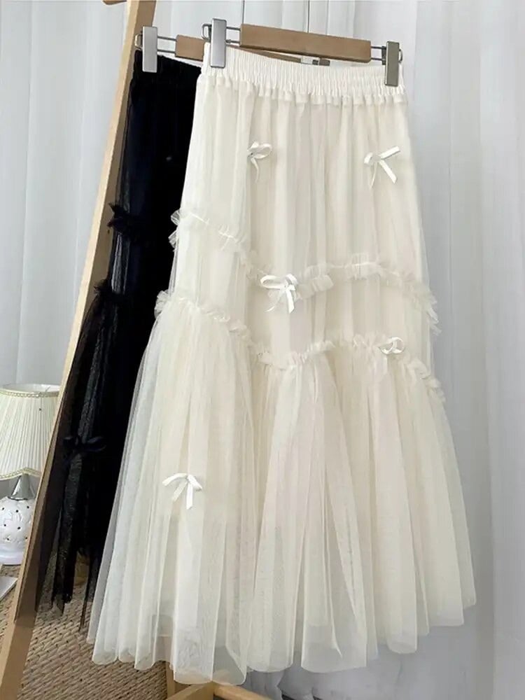 リボンフリルデザインが華やかなチュールスカート。