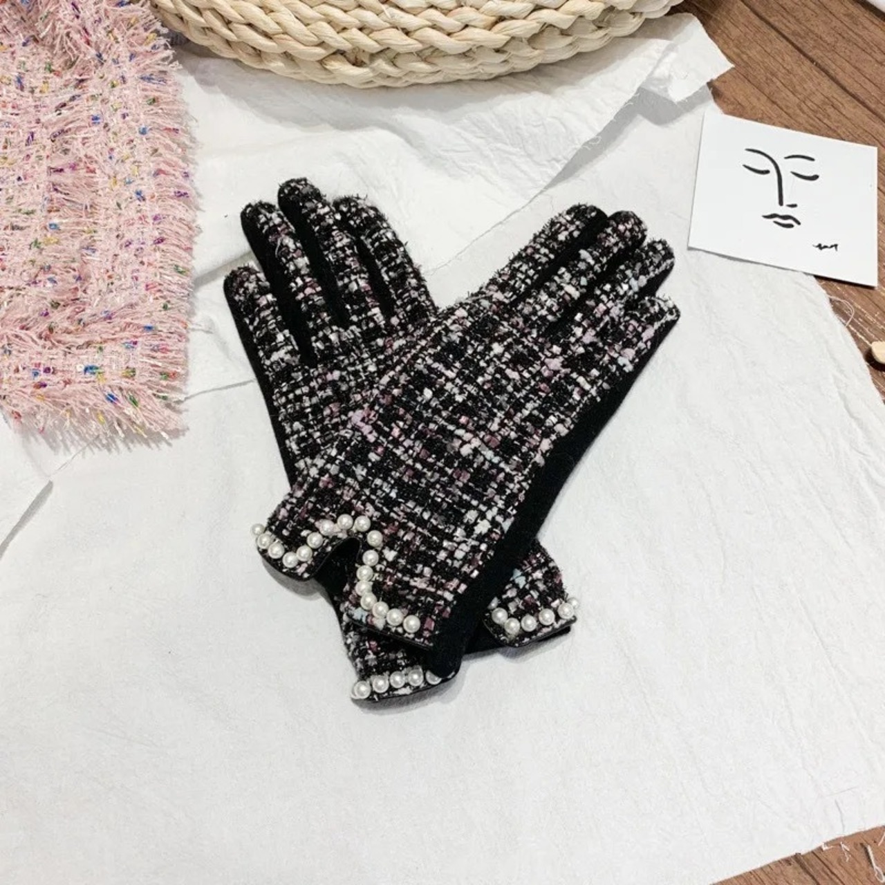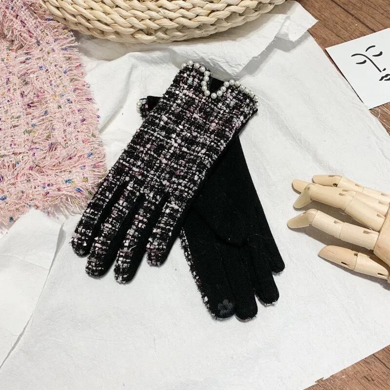 ツイードにパールデザインが華やかなグローブ。