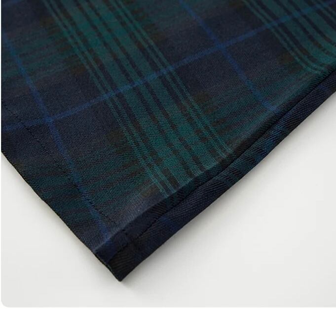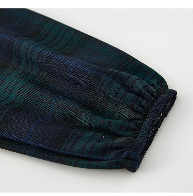 レースブラウスがドッキングデザインになったチェック柄のワンピース。