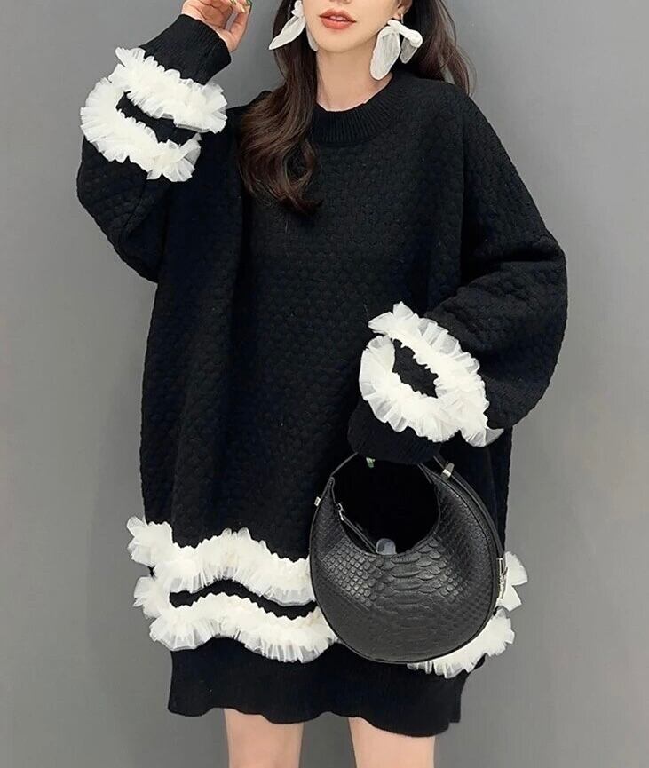 チュールフリルがアクセントのニット。