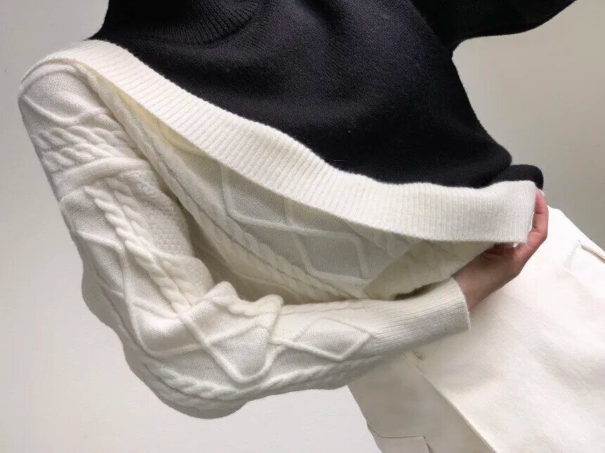 アシンメトリーな配色デザインがオシャレなニット。