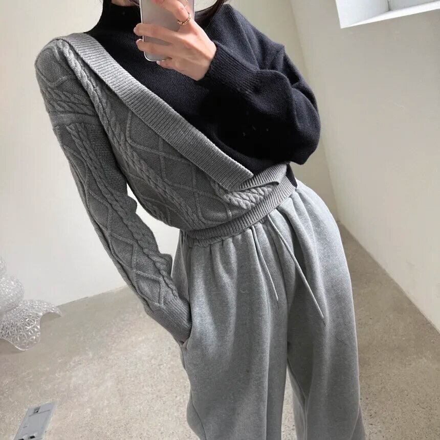 ニットの編み模様の切り替えもアクセントに。