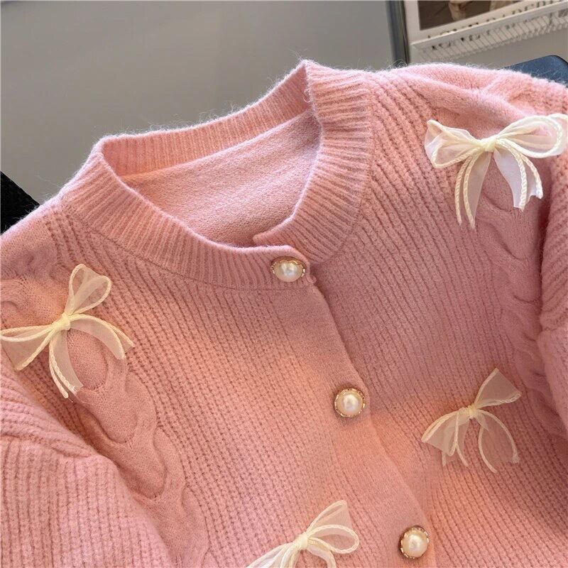 リボンパールニットカーディガン(一ヶ月程でお届け)
