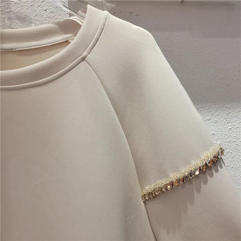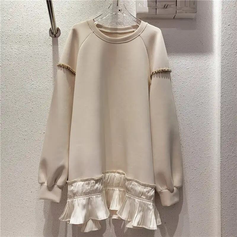 お袖のビジューに裾フリルがアクセントのワンピース。