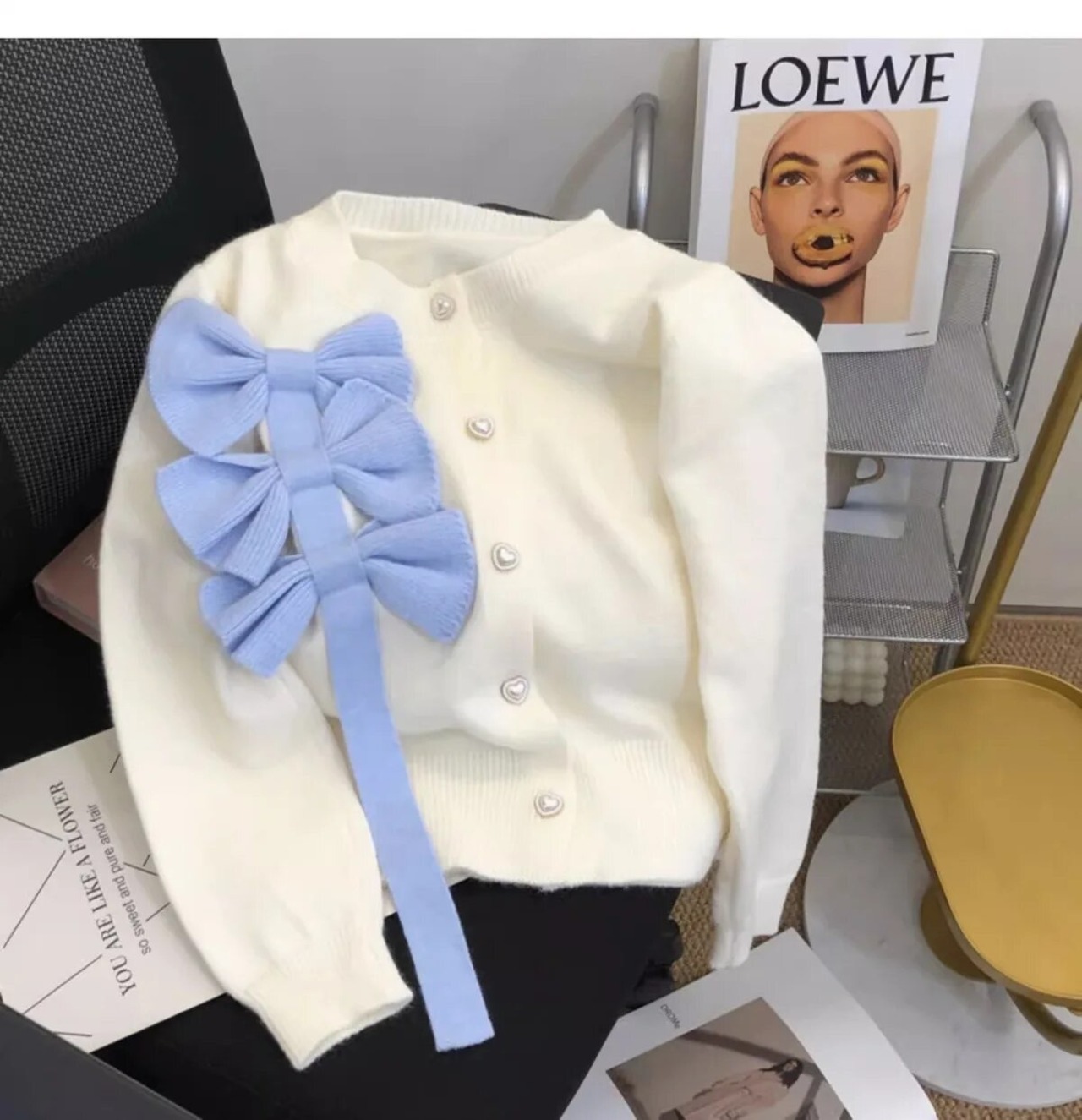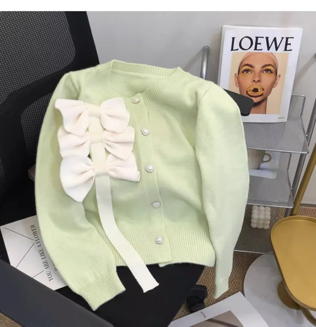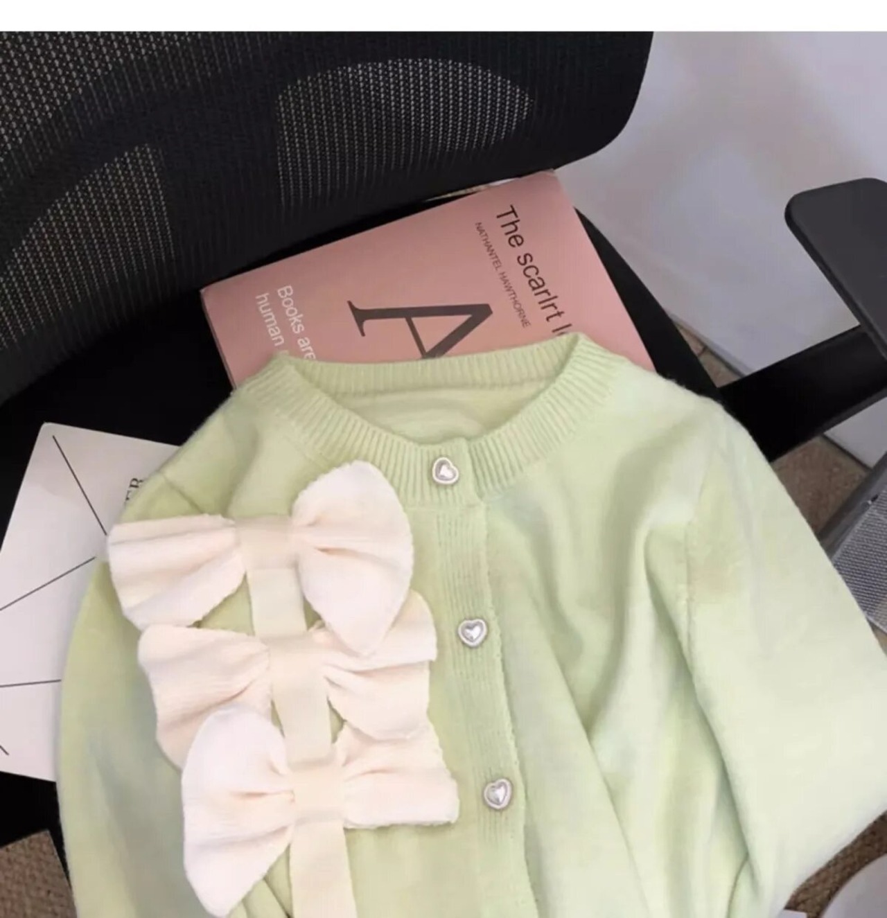 配色リボンカーディガン(一ヶ月程でお届け)