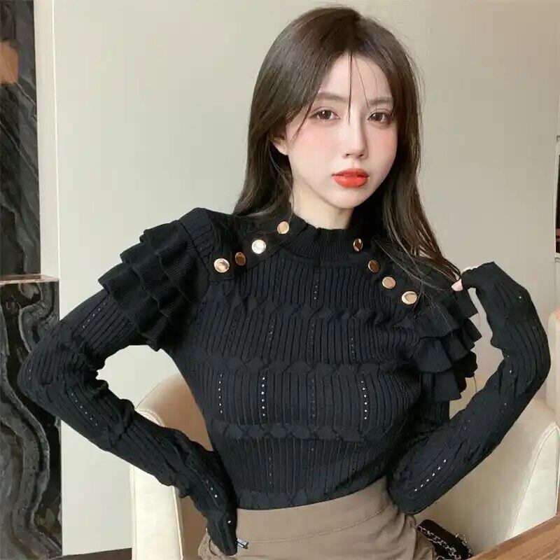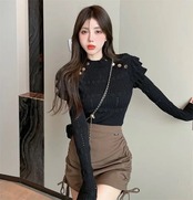 様々なスタイリングに合わせやすく、コーデのポイントにもなるニットです。
