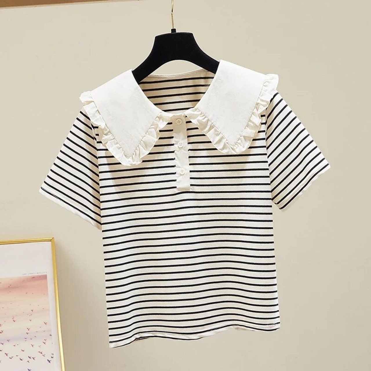 フリルカラーボーダーTシャツ(一ヶ月程でお届け)