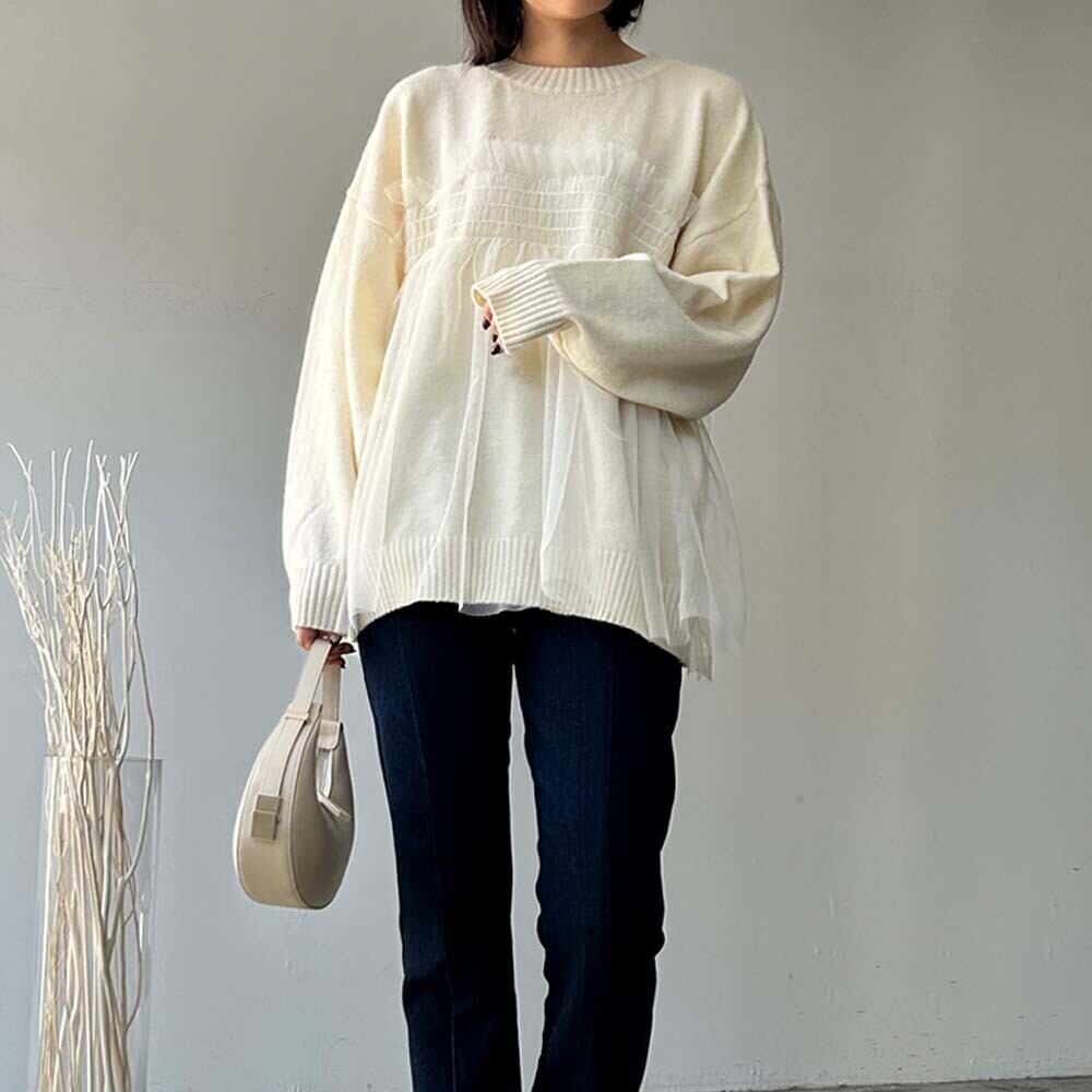 チュールをドッキングした1着1枚で決まるデザインでコーデも迷わず楽々◎