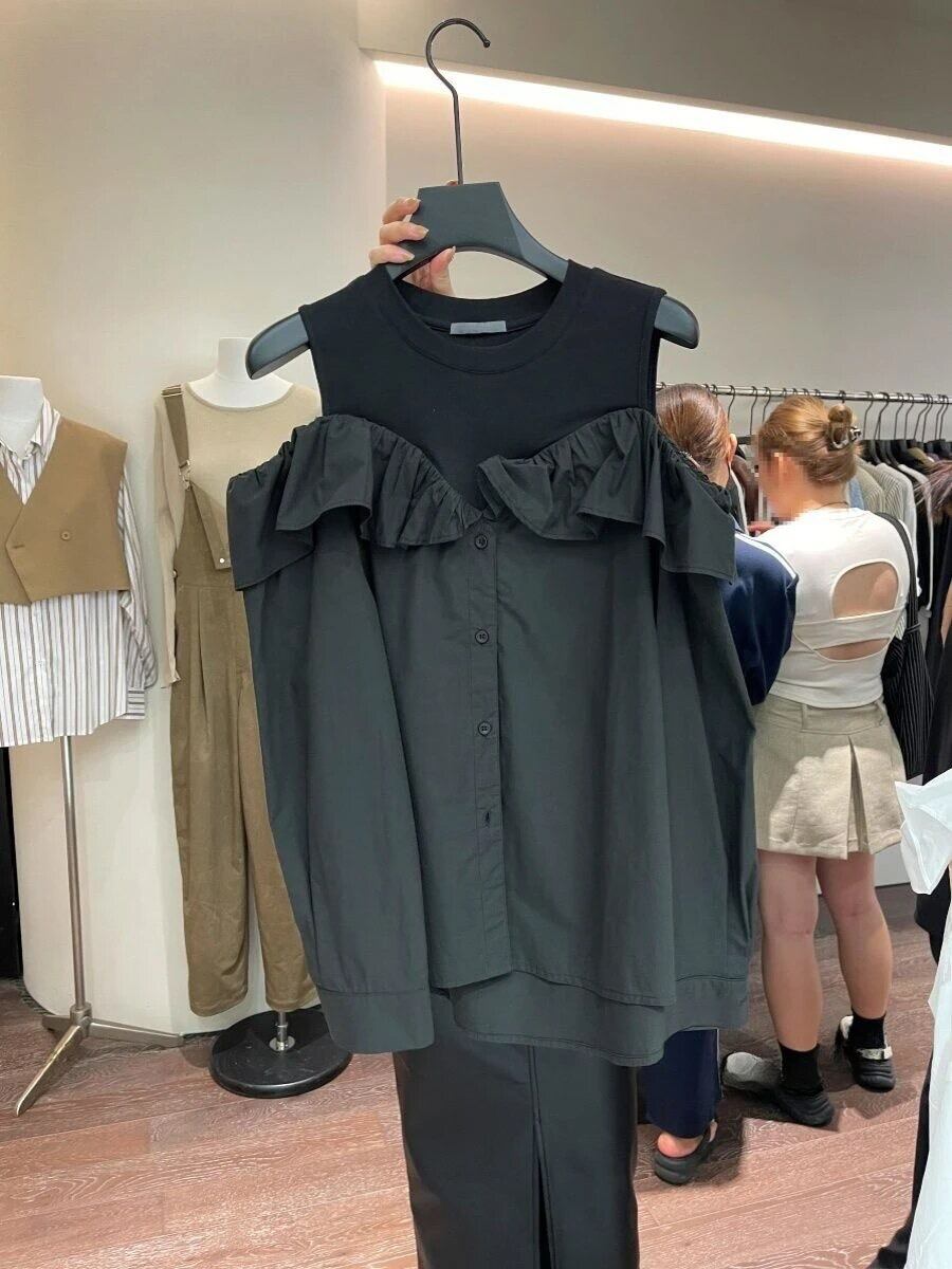 フリルやオープンショルダーがスタイリングのアクセントに。