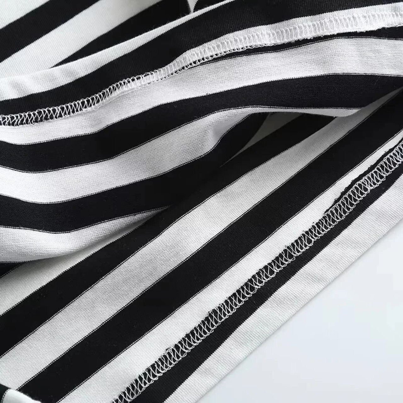 パーカーなどの羽織りアイテムのインナーとしても配色がアクセントに。