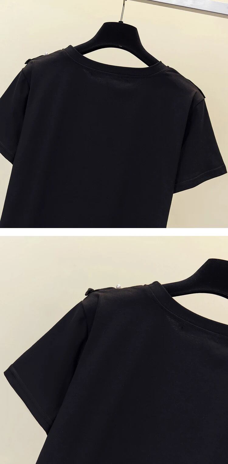 アシンメトリーレースパールTシャツ(一ヶ月程でお届け)