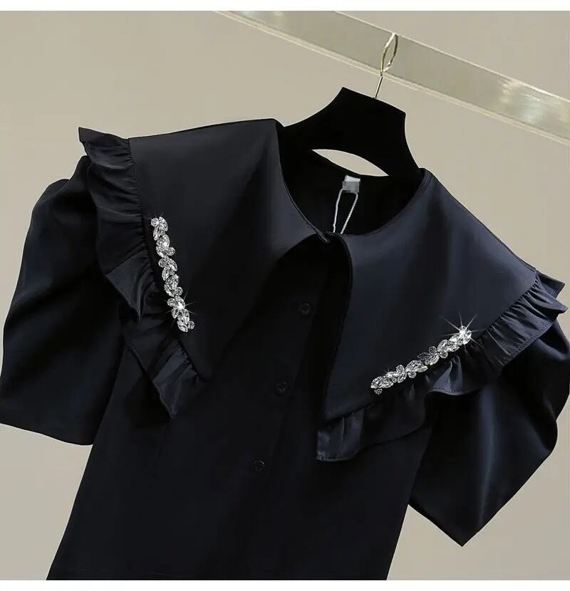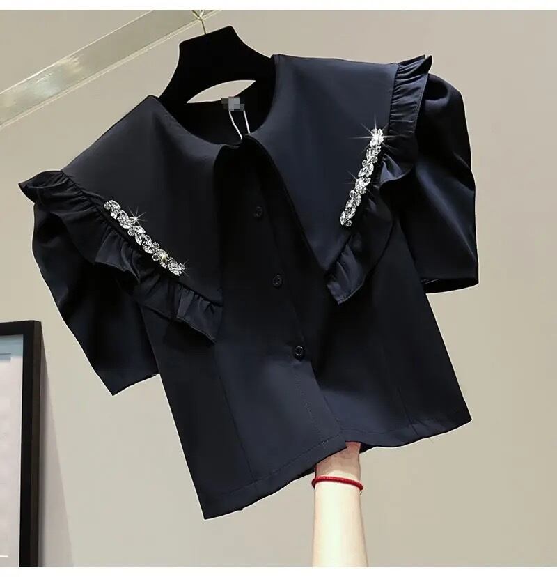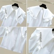 フリルカラービジューブラウス(一ヶ月程でお届け)