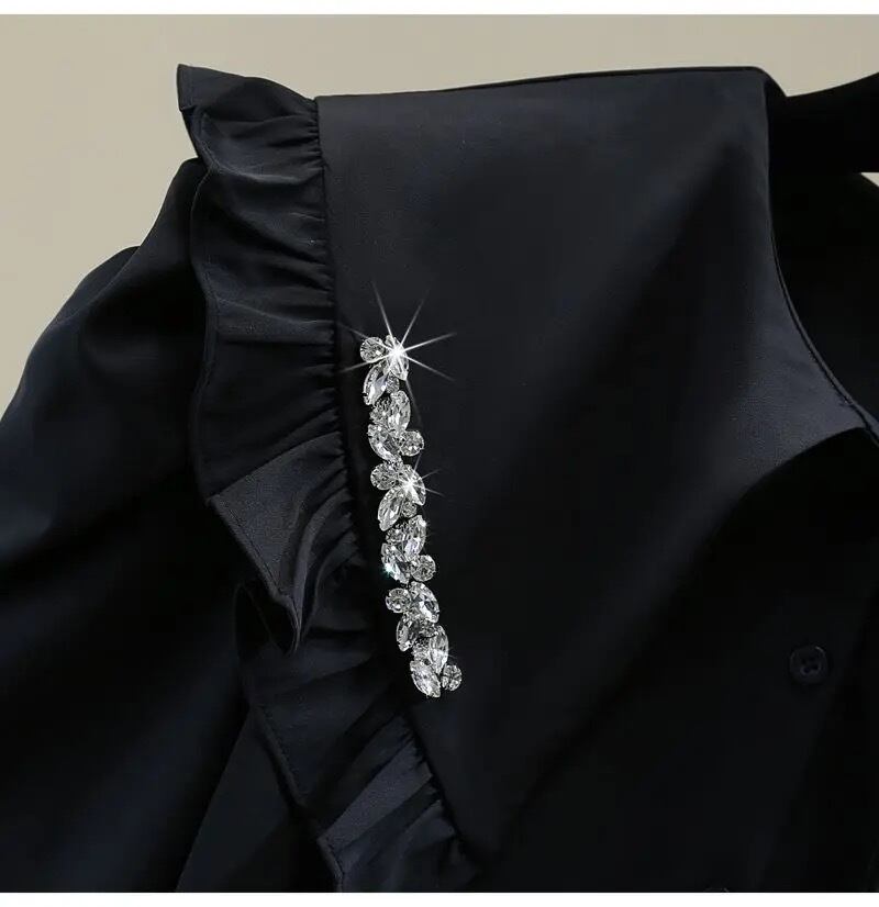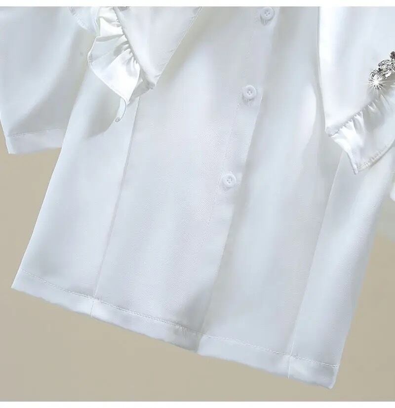 フリルビジューカラーが華やかなブラウス。