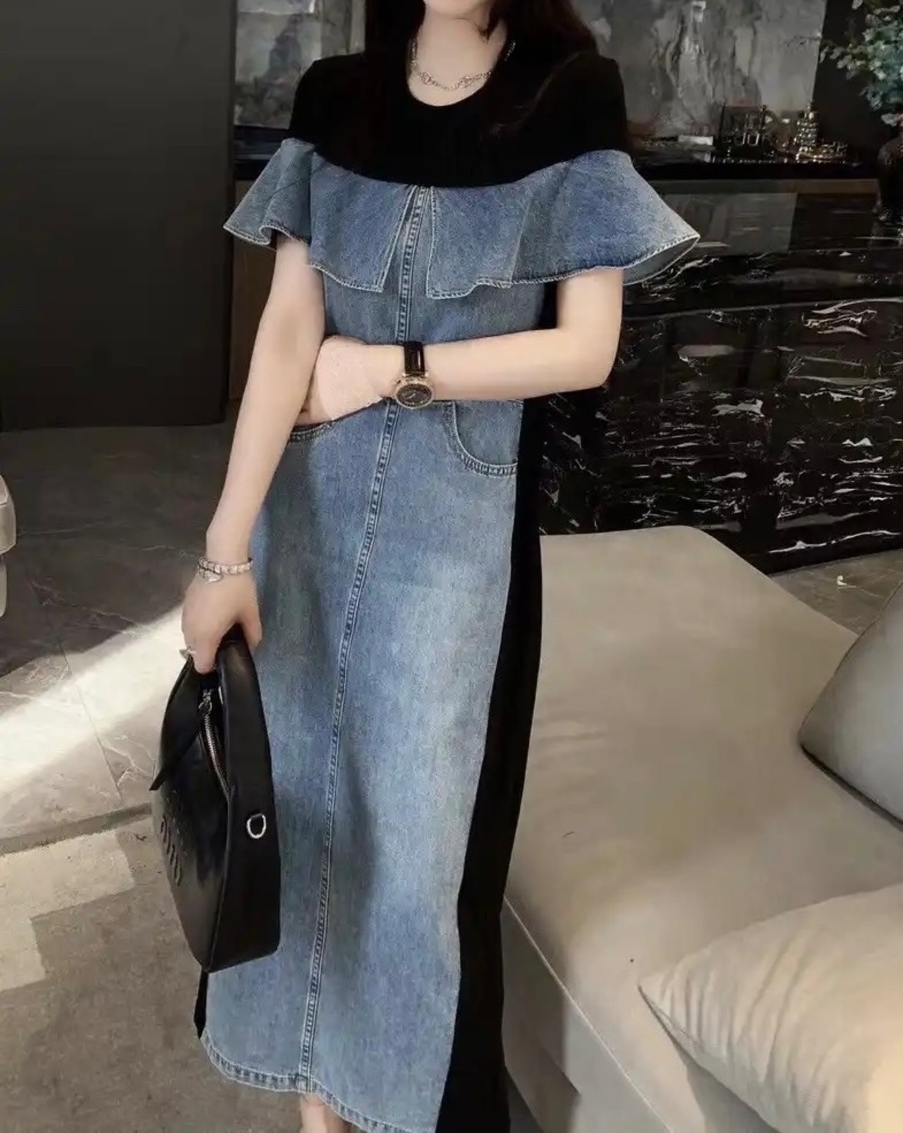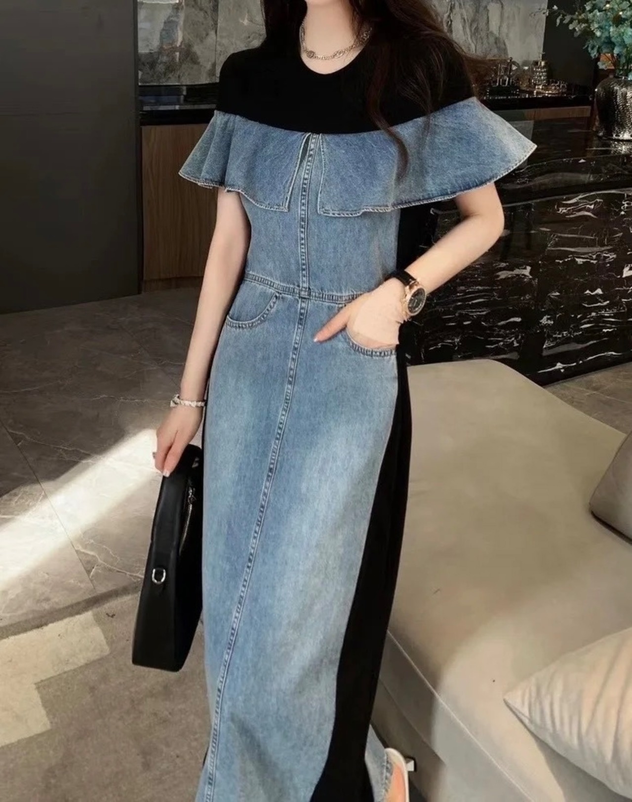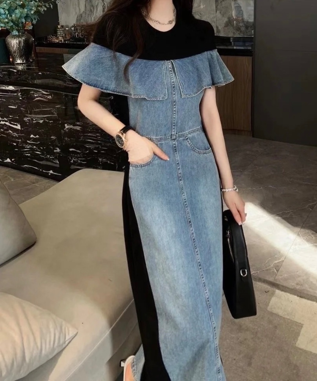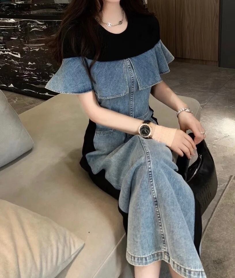 バイカラードッキングデニムワンピース(一ヶ月程でお届け)