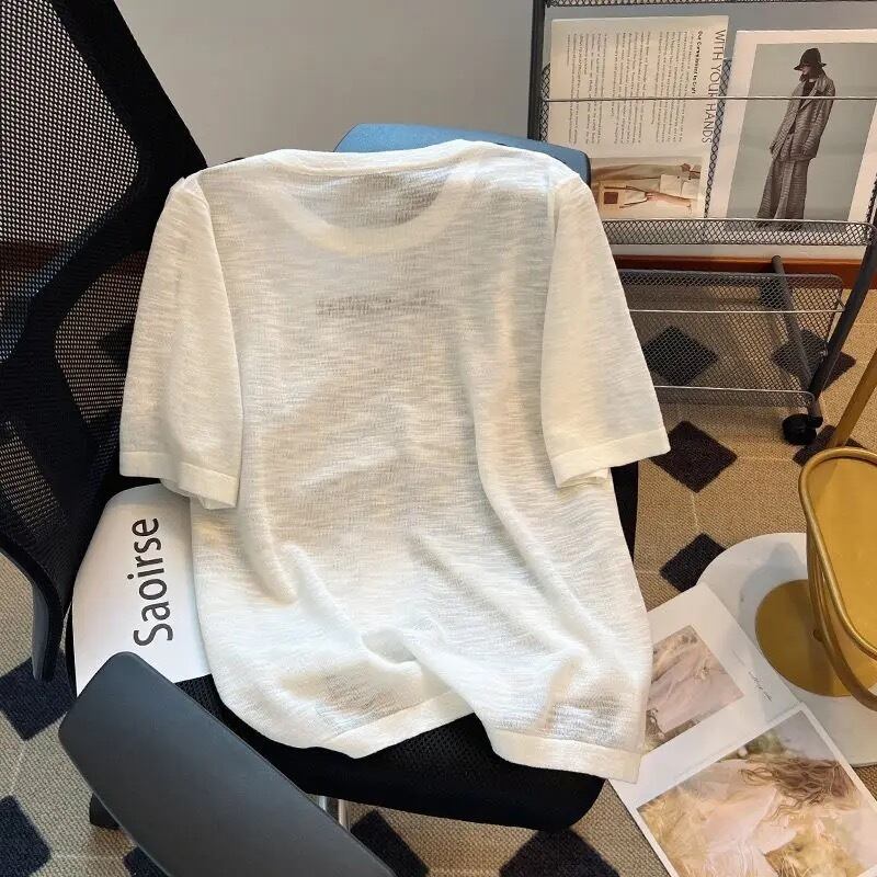 Tシャツとボーダーニットを重ねたかのようなデザインが可愛いトップス。