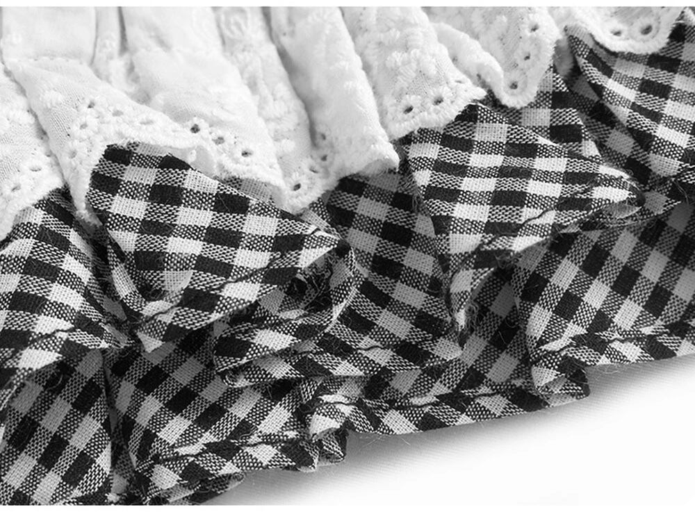 お袖や裾部分にレースやギンガムチェックがデザインされたTシャツ。