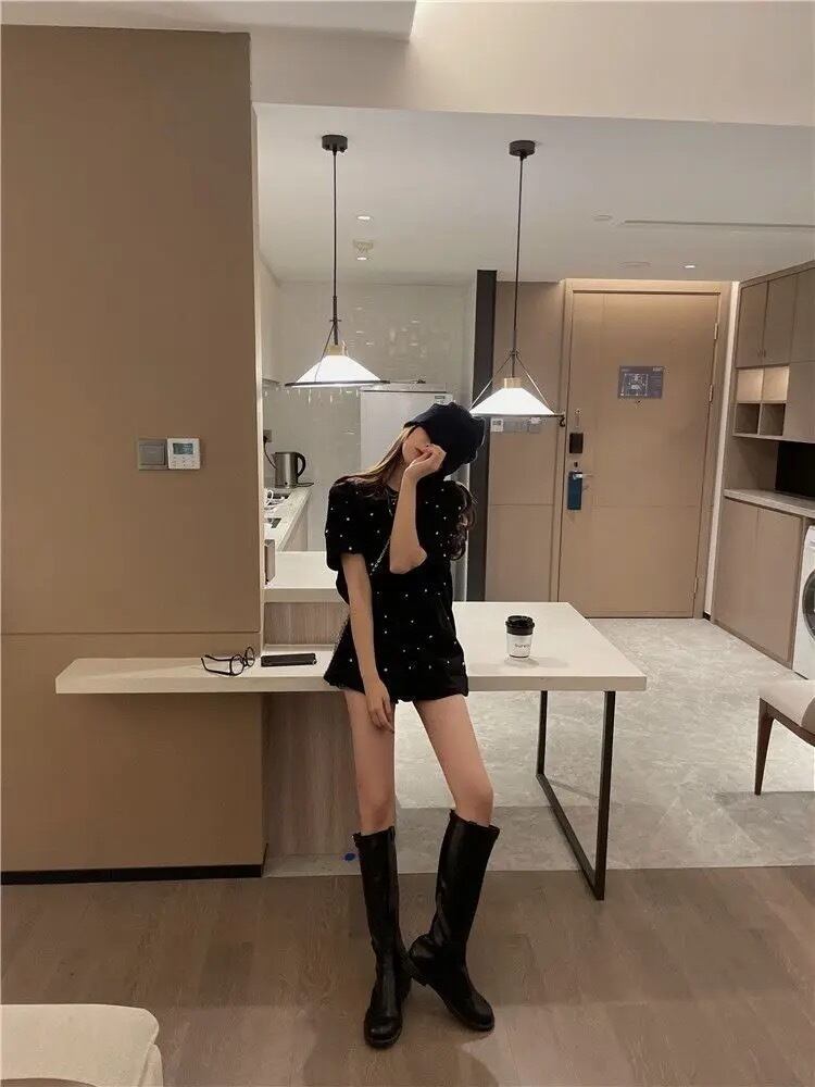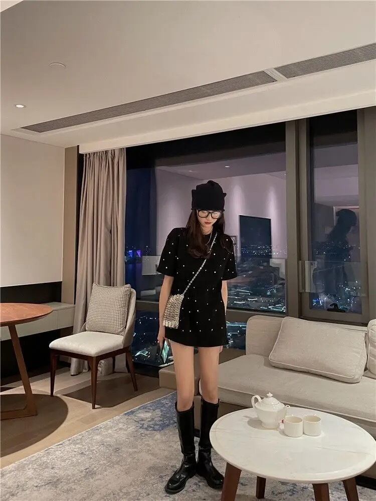 ドットビジューデザインのTシャツ。