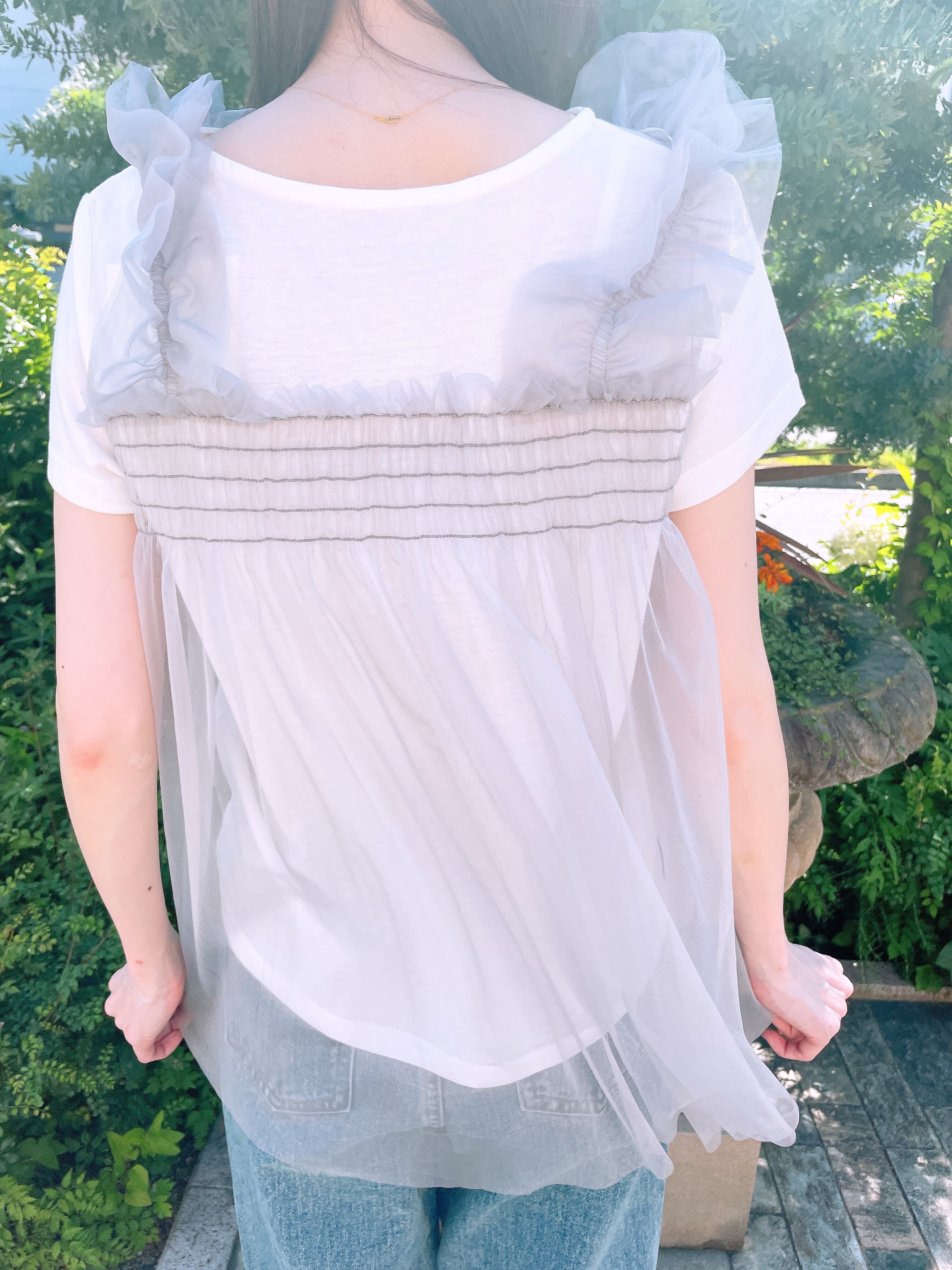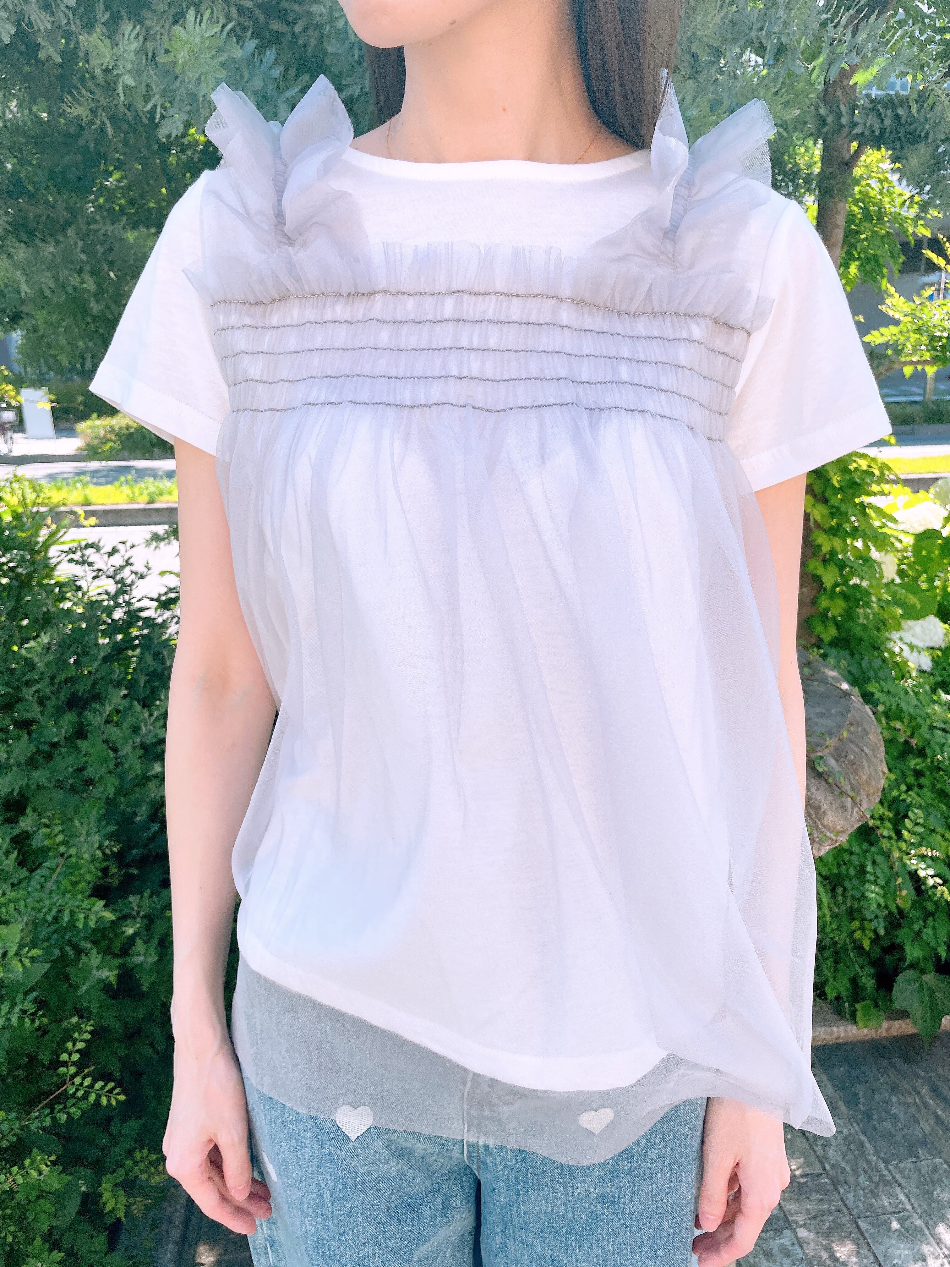 ふんわりとした透け感がオシャレで華やかな印象に。