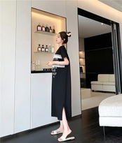 フリルプリントTシャツワンピース(1ヶ月程でお届け)