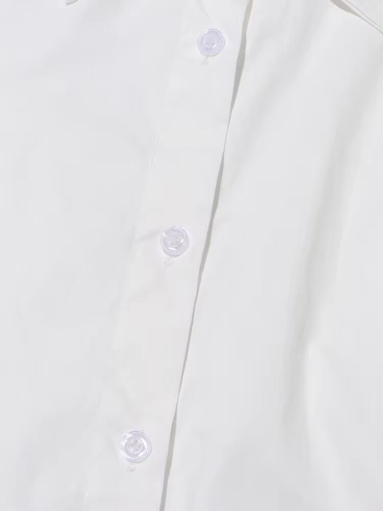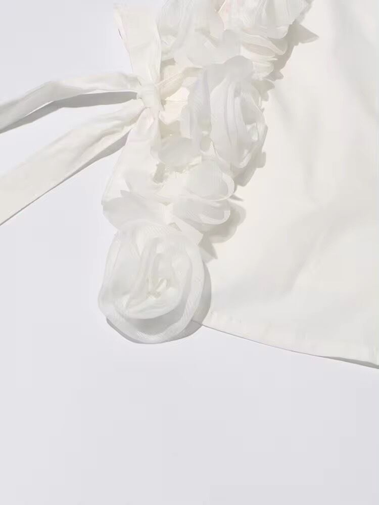 立体感あるフラワーがサイドにデザインされたブラウス。